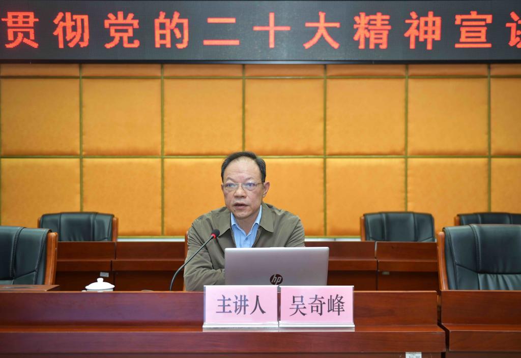 宣讲会上,吴奇峰围绕“深入学习宣传贯彻党的二十大精神”“把握职业教育发展新契机,规划松山发展新蓝图”“踔厉奋发、勇毅前行,担当民族复兴大任的时代新人”三个方面进行了全面深入的宣讲,教育引导广大新生深刻领悟“两个确立”的决定性意义,进一步增强“四个意识”、坚定“四个自信”、做到“两个维护”。他强调,学习宣传贯彻党的二十大精神,是学校当前和今后一个时期的首要政治任务。广大师生要深刻认识党的二十大的重大意义,通过深刻理解和把握党的二十大精神的丰富内涵,以高度的使命感与责任感,宣传贯彻落实好党的二十大精神。