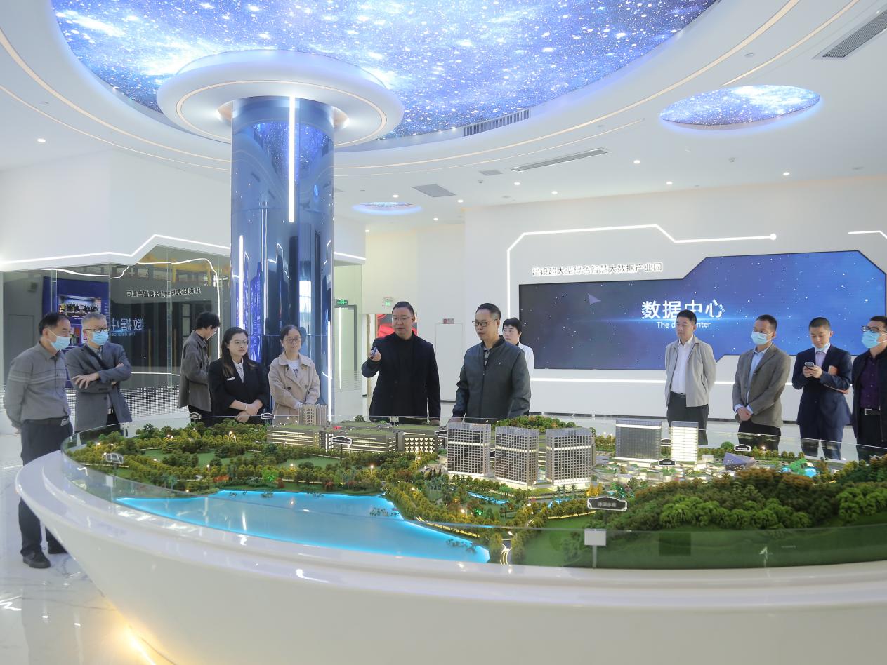 在华韶数智总经理王帅的陪同下,佘少华一行参观了华韶数据谷一楼大数据展厅、01号楼数据中心。王帅详细介绍了“东数西算”工程推进情况及华韶数据谷二期、三期项目规划及未来在产教融合方面的合作构想,并对产业学院的建设发展给予了充分肯定。