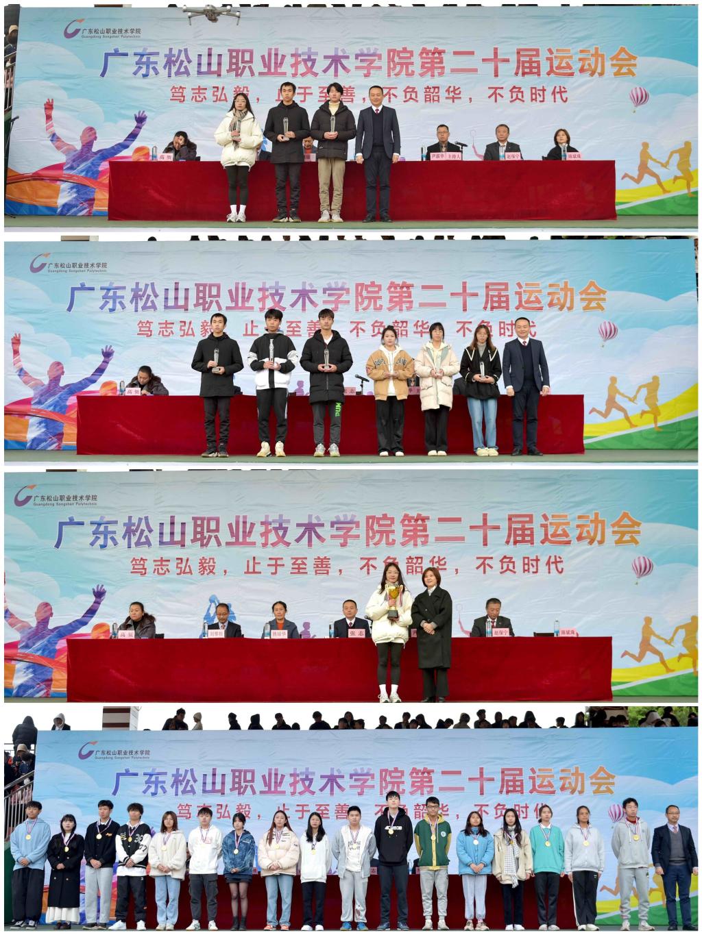 12月4日下午,广东松山职业技术学院第二十届运动会落下帷幕,副校长张志出席闭幕式并致闭幕词。他向取得优异成绩的集体和个人表示祝贺,向参加本次运动会的全体师生、裁判员、教练员、工作人员表示衷心的感谢,并希望大家充分发扬“笃志弘毅、止于至善,不负韶华、不负时代”的主题精神,养成良好的体育锻炼习惯,追求文明健康的生活方式,以更加昂扬的斗志、更加强健的体魄和更加饱满的精神投入到今后的学习、工作和生活中,为创造更加美好的明天而努力奋斗!