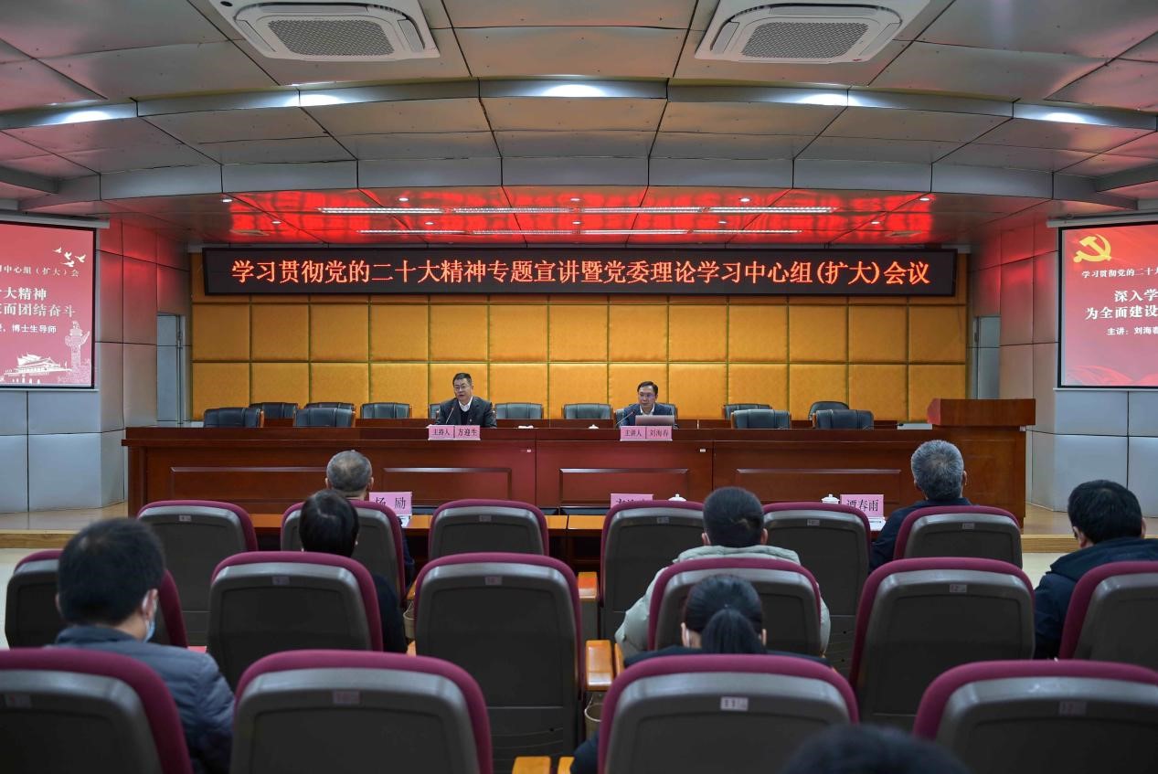 为深入学习宣传贯彻党的二十大精神,在全校范围内持续掀起学习宣传贯彻落实党的二十大精神的热潮,2月9日,我校特邀请广东外语外贸大学副校长刘海春教授做客“弘毅大讲堂”,并作党的二十大精神专题辅导报告。学校党委书记方迎生主持会议,校领导谭春雨、张林茂、张志等出席会议,广东外语外贸大学研究生院院长杨励教授应邀一同出席,学校科级以上干部、党支部书记及思政课教师代表共110多人参加学习。