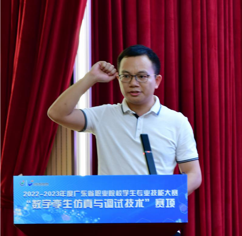 4月21日至23日,由广东省教育厅主办,广东松山职业技术学院承办的2022-2023年度广东省职业院校技能大赛“数字孪生仿真与调试技术”赛项在我校顺利举行,来自全省40所高职院校68支代表队共135名参赛选手展开技能巅峰对决。