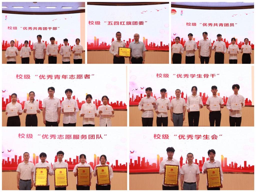 表彰环节中,与会领导分别为获得校内表彰的先进集体和优秀个人代表颁奖,为获得上级团组织表彰的先进集体和优秀个人代授奖牌和荣誉证书。