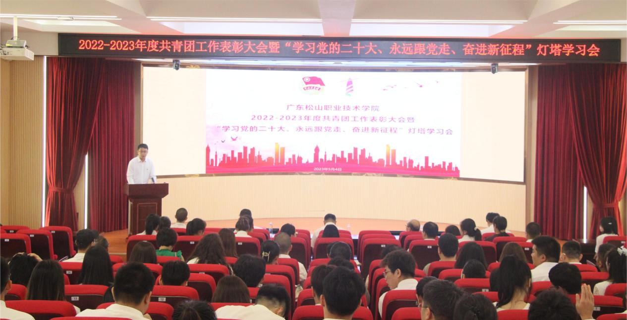 为深入学习宣传贯彻习近平新时代中国特色社会主义思想和党的二十大精神,认真贯彻落实习近平总书记关于青年工作的重要思想及关于教育的重要论述,集中展示新时代松山青年的精神品格和价值追求,充分发挥青年典型模范带头作用,5月4日下午,学校团委在学术报告厅宽C101召开2022-2023年度共青团工作表彰大会暨“学习党的二十大、永远跟党走、奋进新征程”灯塔学习会。学校党委副书记张林茂出席会议并讲话,学生工作部部长叶采飞、招生与就业指导中心主任陈瑞华、创新创业学院副院长刘松、教务部副部长李福运、各二级学院党总支负责人出席会议,各二级学院团委书记、辅导员及学生代表等200余人参加会议。大会由学校团委副书记曾庆宇主持。