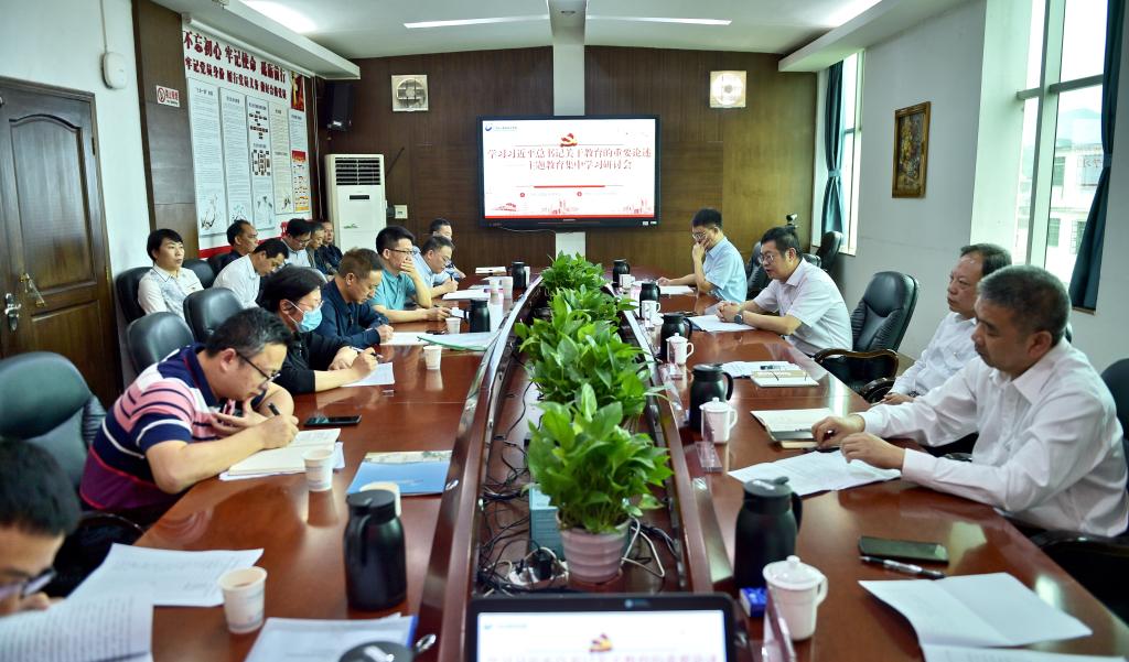学校领导班子成员谭春雨、张林茂、杨宇、张志,学校中层干部等参加集中学习研讨。