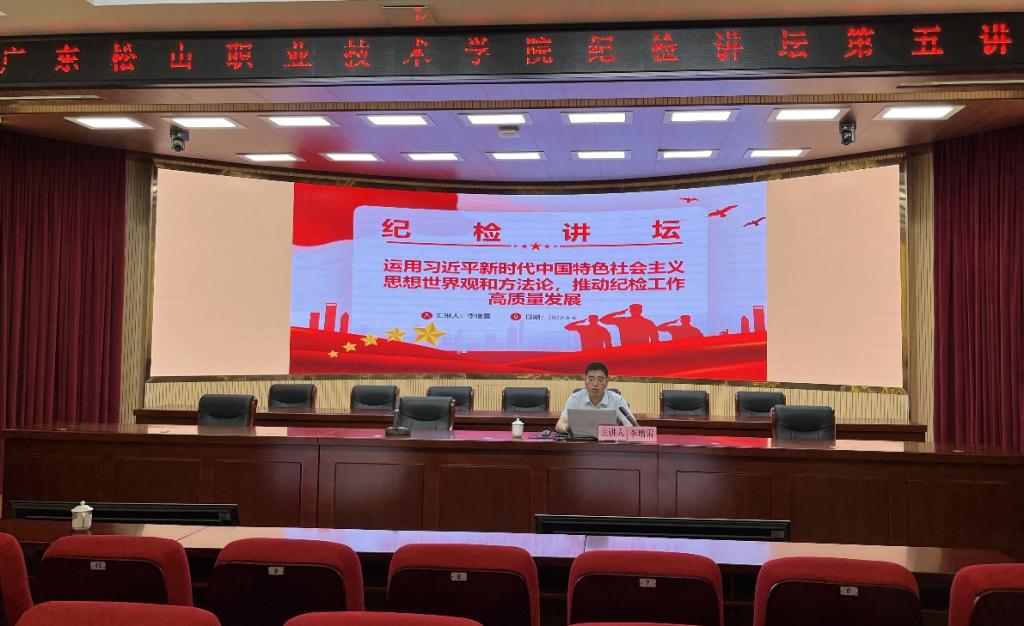 5月6日下午,广东松山职业技术学院2023年纪检讲坛第五讲开讲。学校党委副书记、纪委书记谭春雨主持会议,纪委委员、党政办主任李增雷作题为《运用习近平新时代中国特色社会主义思想世界观和方法论,推动纪检工作高质量发展》的专题讲座。学校纪委委员、二级单位党(总)支部(副)书记、纪检委员、特约监察员参加了学习。