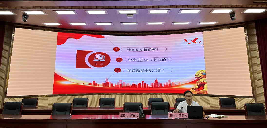 5月12日下午,2023年纪检讲坛第六讲开讲,讲座由学校党委副书记、纪委书记谭春雨主持,纪检室副主任张育志围绕“如何做好基层纪检工作”开展专题讲座。学校纪委委员、二级单位党(总)支部(副)书记、纪检委员、特约监察员参加了学习。