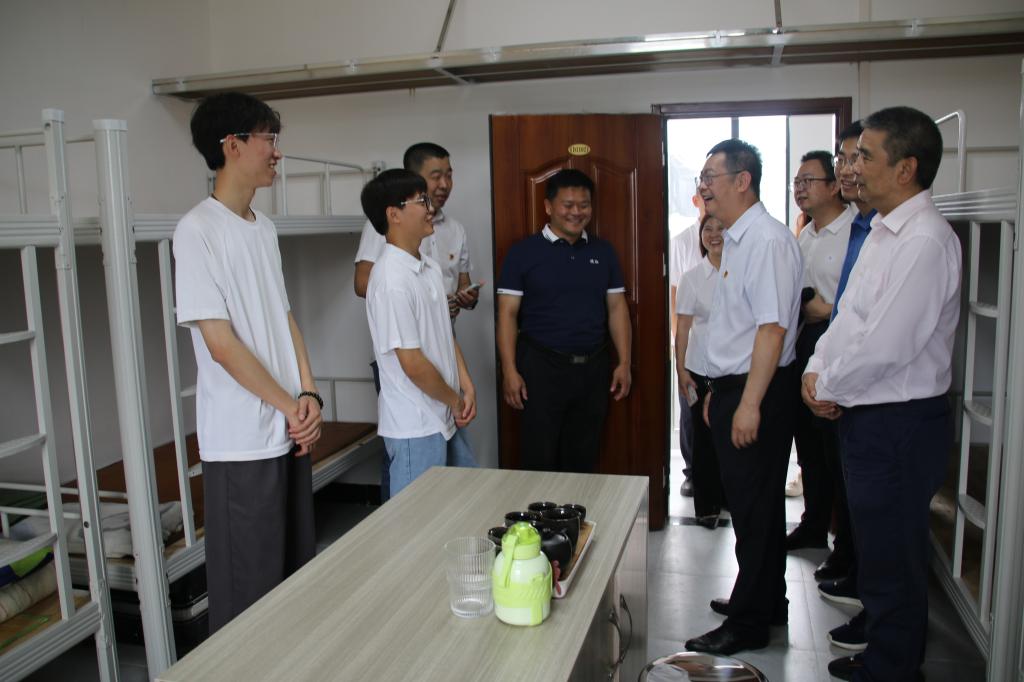 专题思政课结束后,方迎生一行深入到农村电商产业学院实践教学场地、学生宿舍、食堂现场走访调研,详细了解产业学院生活基础设施等建设情况、学生在产业学院学习生活情况。对同学们在产业学院的表现给予了充分的肯定,并为产业学院师生送上降温防暑饮品,送去炎炎夏日里的丝丝清凉。