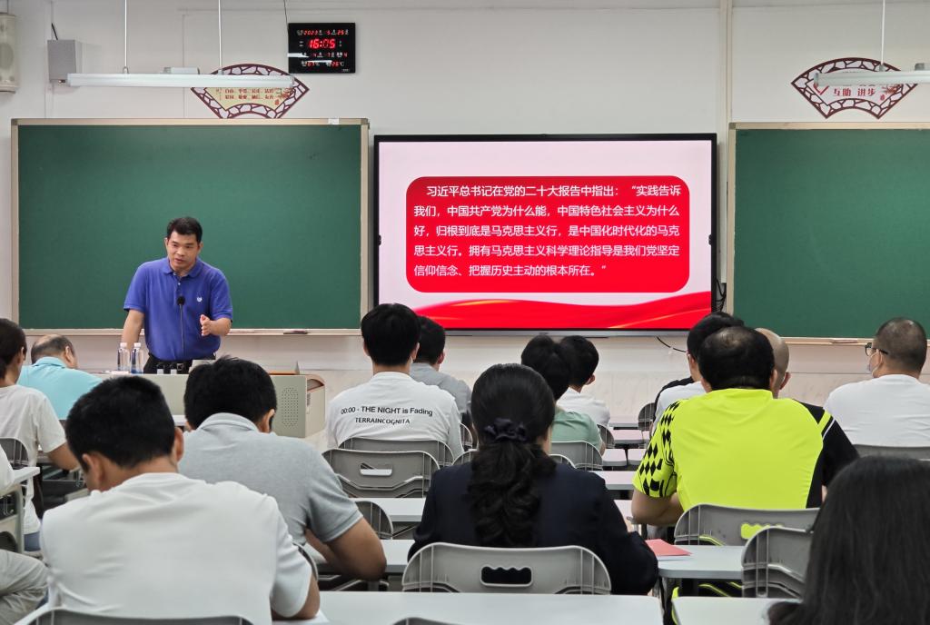张林茂结合主题教育开展,从学习到生活,从微观到宏观,从中国到世界,从理论到实践,运用辩证思维、历史思维、系统思维和法治思维,畅谈广大党员教师与学生骨干学习贯彻习近平新时代中国特色社会主义思想要学习贯彻“六个必须坚持”。第一,坚持人民至上,践行群众路线。人民性是马克思主义最鲜明的品格。坚持人民至上,必然要求把践行群众路线作为贯彻落实习近平新时代中国特色社会主义思想的重要方法论。我们开展工作要善于凝聚人民群众的智慧和力量,评价工作要坚持把人民拥护不拥护、赞成不赞成、高兴不高兴、答应不答应作为衡量一切工作得失的根本标准。第二,坚持自信自立,坚定不移走自己的路。自信是我们党在长期斗争中形成的精神气质,自立是我们立党立国的重要原则。走自己的路,是党百年奋斗得出的历史结论。我们党在领导革命、建设、改革长期实践中,历来坚持独立自主开拓前进道路,这种独立自主的探索和实践精神,这种坚持走自己的路的坚定信心和决心,是我们党全部理论和实践的立足点,也是党和人民事业不断从胜利走向胜利的根本保证。第三,坚持守正创新,以新的理论指导新的实践。守正与创新是辩证统一的,守正是创新的前提和基础,偏离守正的创新将误入歧途。但是,守正绝不是刻舟求剑,更不是固步自封,而是根据时空环境的变化不断调整创新,否则就会陷入僵化、陈旧、过时的境地。我们要以科学的态度对待科学、以真理的精神追求真理,坚持马克思主义基本原理不动摇,坚持党的全面领导不动摇,坚持中国特色社会主义不动摇。第四,坚持问题导向,寻找解决问题的方法。每个时代总有属于它自己的问题。新征程上我们所面临问题的复杂程度、解决问题的艰巨程度明显加大。聚焦学校高质量发展,我们要增强问题意识,及时发现问题、科学分析问题、正确解决问题,瞄着问题去、迎着问题上,只要科学地认识、准确地把握、正确地解决这些问题,就能够把我们的社会不断推向前进。第五,坚持系统观念,推动各方面工作发展。各单位在立足本职开展工作的过程中,要培养运用普遍联系、全面统筹的观点准确判断复杂形势,坚持系统观念推动各方面协调发展。我们只有全面、系统地分析问题,才能统筹兼顾、综合平衡,避免陷入顾此失彼、进退失据、“捡了芝麻丢西瓜”的困境,做到观大势、明大局、谋大事。第六,坚持胸怀天下,秉持开放包容的精神。马克思主义科学的世界观和方法论就是要有向一切先进学习的胸怀和包容不同意见的人。习近平新时代中国特色社会主义思想鲜明体现出胸怀天下的大境界大格局。我们开展工作要谦恭而有内涵,温润而有力量,具有广阔的胸怀,开阔的视野,站得更高,看得更长,走得更远。