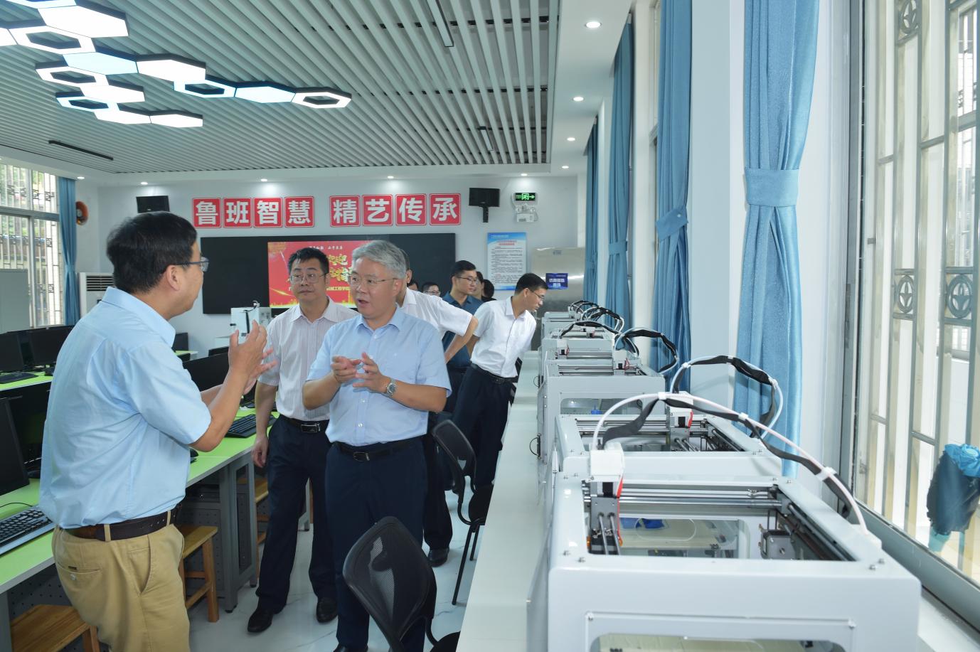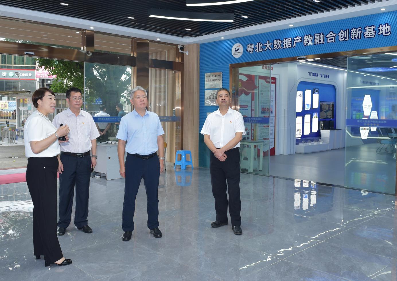 会后,廖锦添一行在方迎生、谭春雨等的陪同下参观了粤北大数据产教融合基地、国防教育和征兵宣传展板、工业机器人技术应用实训室、先进制造技术实训基地等,详细了解学校办学情况。