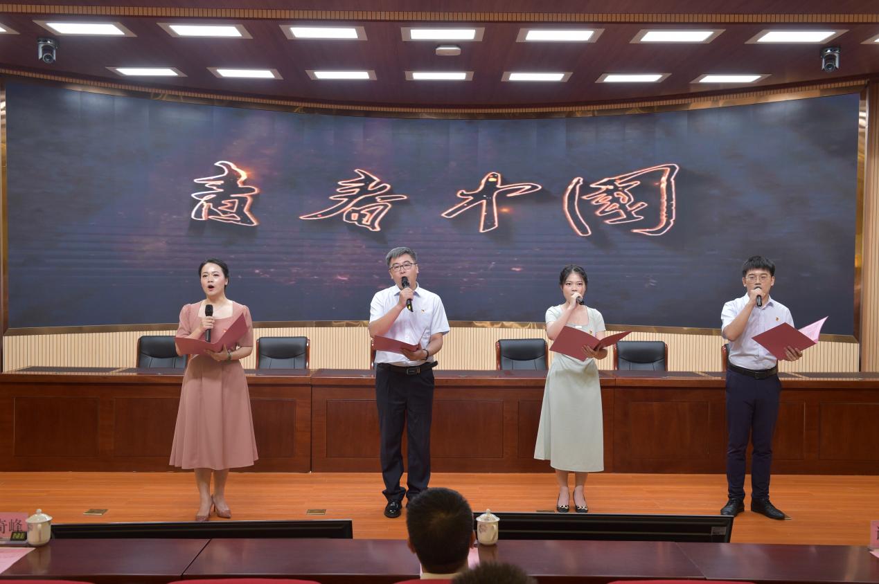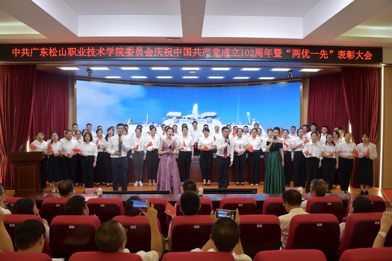 最后,教师党员代表带来了《青春中国》朗诵节目及《我们一起远航》歌唱节目,并带领全场受表彰人员进行合唱,献礼建党102周年。表彰大会在歌声中圆满落幕。