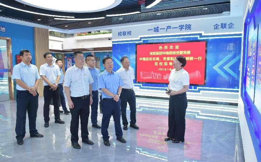 7月12日下午,宝武集团中南钢铁党委常委,中南股份总裁、党委副书记赖晓敏一行4人莅临我校考察交流,学校党委书记方迎生、校长吴奇峰热情接待了赖晓敏一行并举行座谈会,党委副书记张林茂、副校长杨宇出席座谈会。
