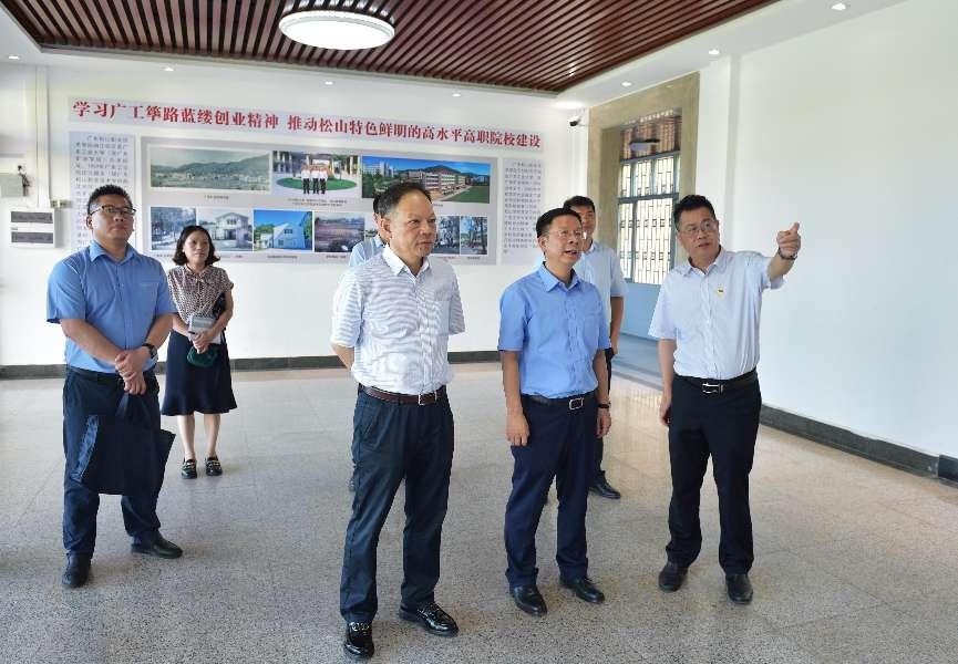 在方迎生、吴奇峰等校领导陪同下,赖晓敏一行参观了粤北大数据产教融合基地、工业机器人技术应用实训室等实训场所。
