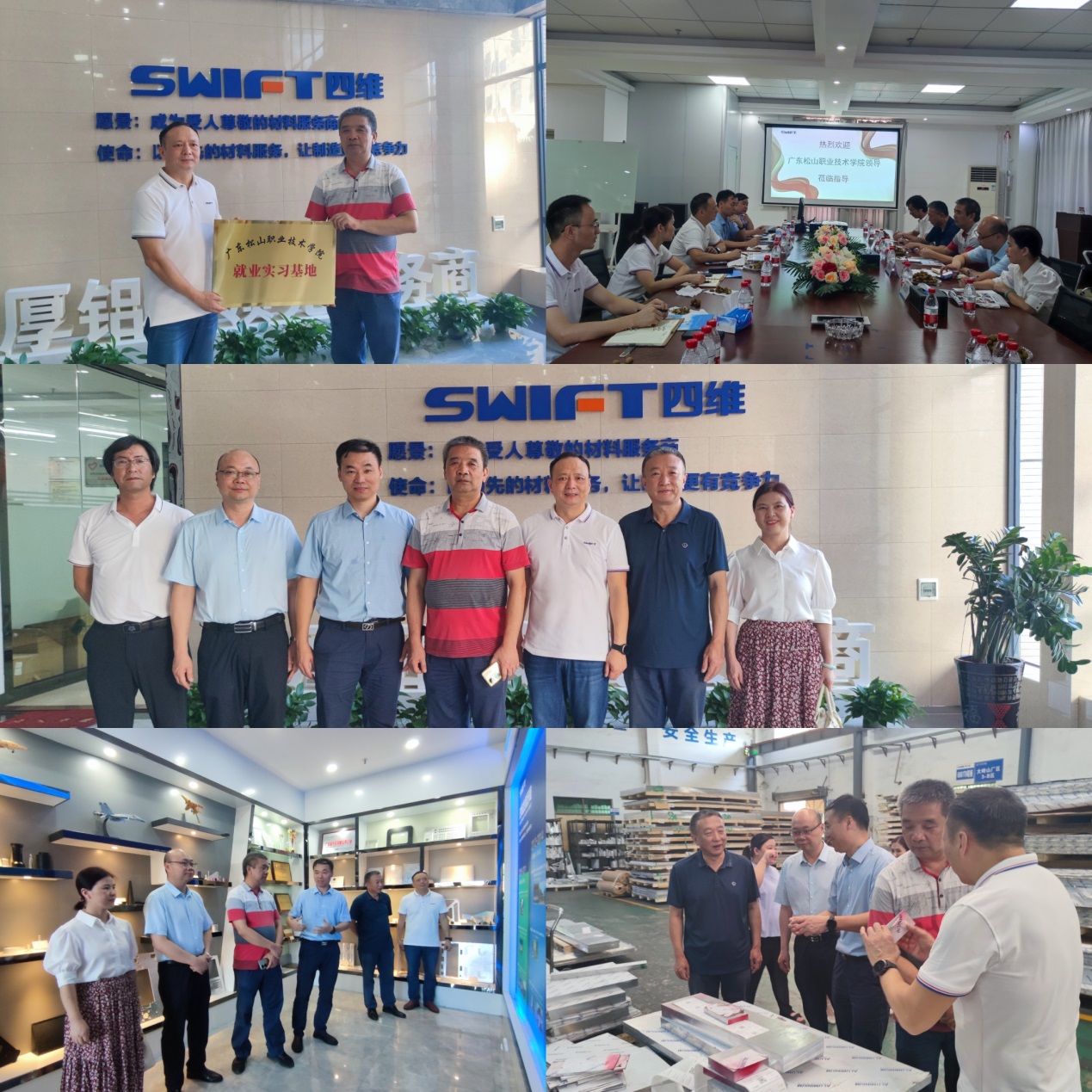 7月11日下午,谭春雨一行到东莞市四维金属材料有限公司调研。公司总经理胡斌、副总经理廖伟坚等出席座谈交流。谭春雨表示,四维金属多年来吸纳了我校众多毕业生,我代表学校对企业给我校毕业生提供就业、职业发展平台表示感谢,毕业生对企业的满意度较高,这足以看出企业对人才的高度重视。他说,通过现场与在岗的毕业生交流,让学校更为放心把学生输送到企业发展,希望后续做实、做细,深化合作。