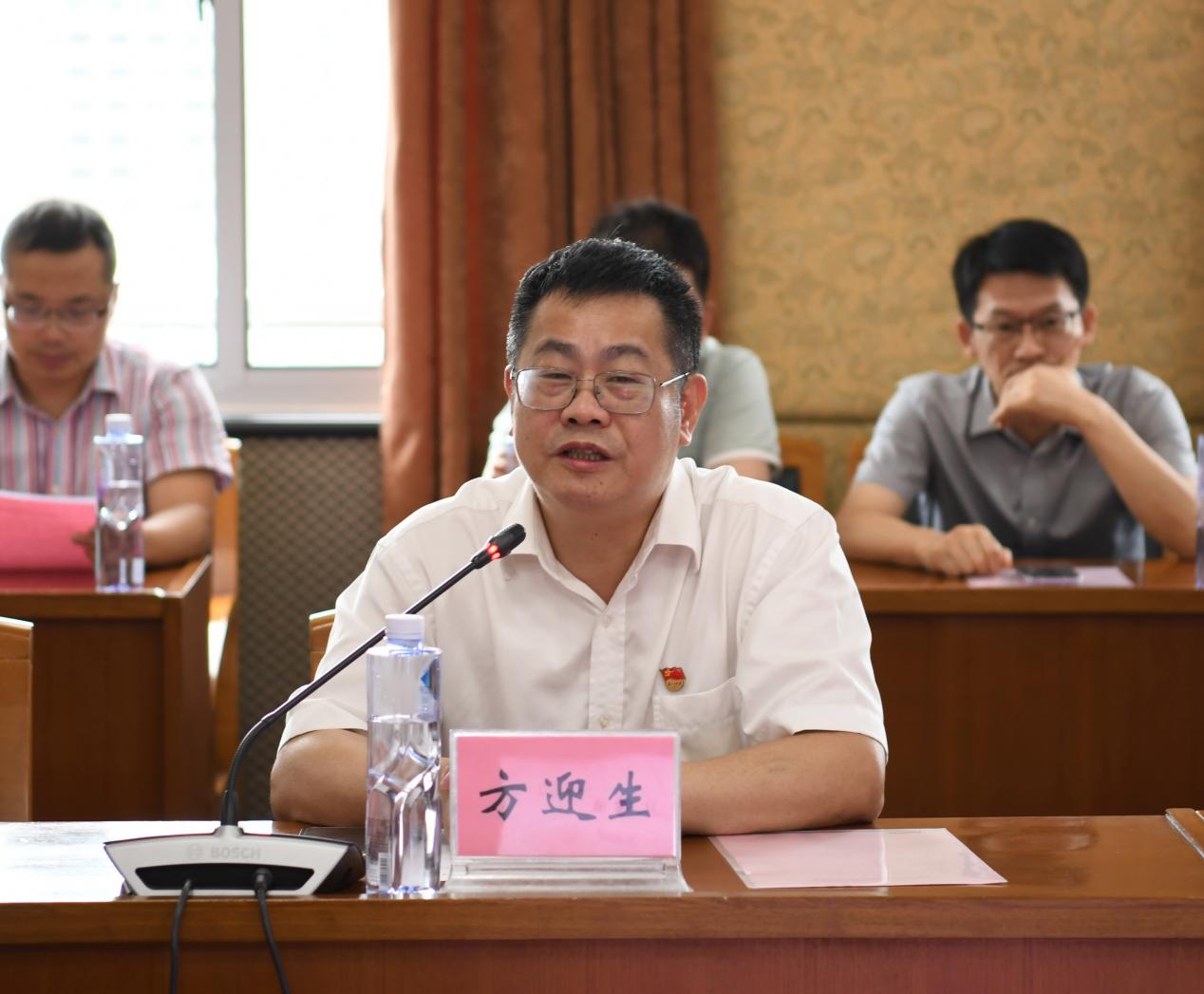 座谈会上,方迎生感谢复旦大学副教授宋军的牵线搭桥以及王振钧的热情接待,让松山职院党员干部有机会来到该校进行交流学习。方迎生表示,上海工程技术大学高职学院为祖国以及上海经济社会发展做出了许多贡献,是一所有底蕴、有追求、有内功的学校,能够到该校参观学习,印象深刻、受益匪浅。会上,方迎生全面介绍了松山职院的历史渊源、地理方位、办学条件、人才培养等方面的情况以及历年来取得的各项成绩,并对松山职院今年中层换届的情况进行了简要介绍。他表示,学校紧扣高水平高职院校建设的目标,朝着高质量发展不断前进,全力筹备学校更名工作,积极融入“双区”建设,为社会培养了一大批高素质技术技能人才,今天能够来到上海工程技术大学高职学院参观学习,为松山职院今后办学育人提供了许多经验与思路,希望两校未来能够加强交流合作,携手进步,共同为全面建设社会主义现代化国家、实现中华民族伟大复兴的中国梦提供有力人才和技能支撑。
