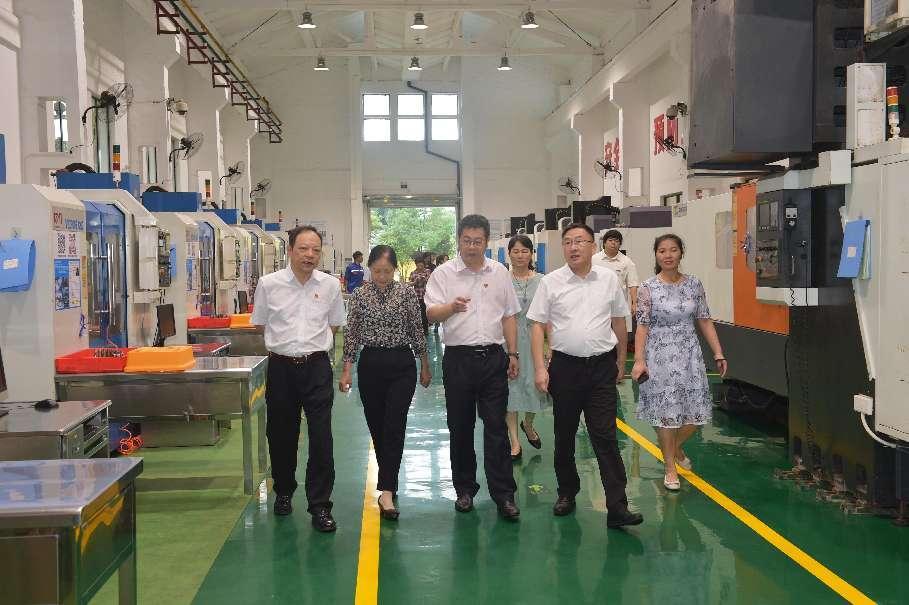 凌振伟一行在方迎生、吴奇峰的陪同下参观了学校先进制造实训基地和粤北大数据产教融合创新基地。