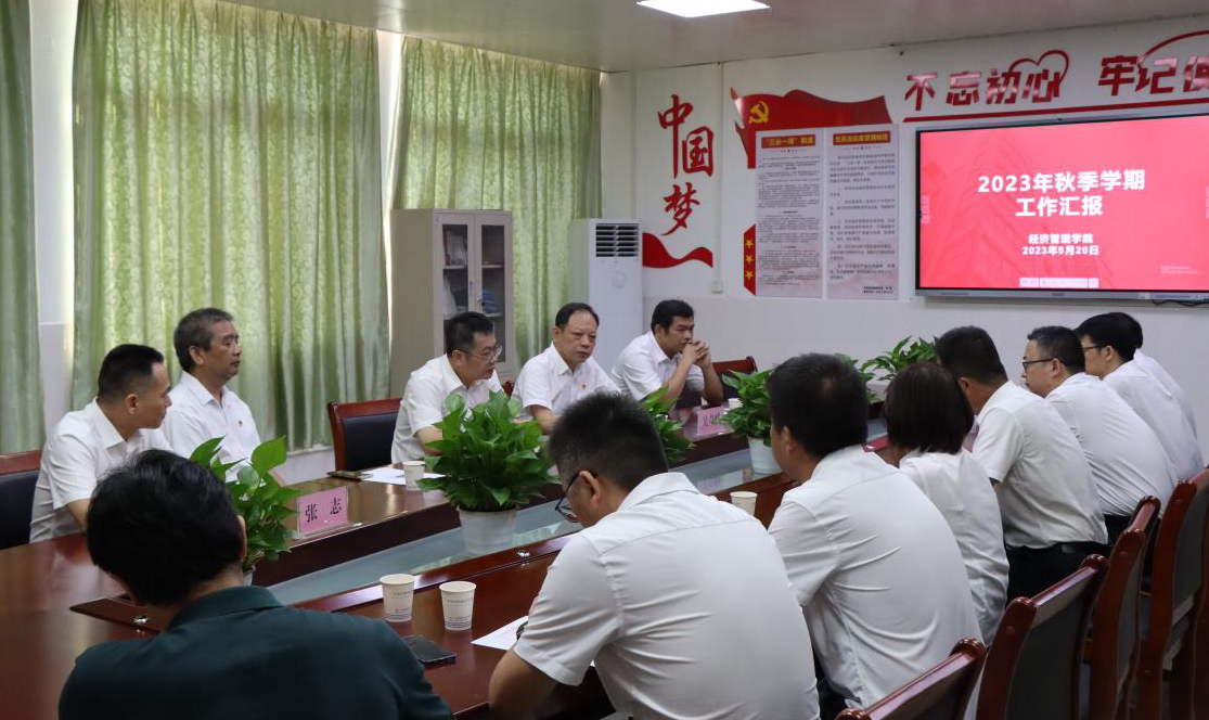 方迎生、吴奇峰一行听取了经济管理学院关于秋季学期开学工作情况的汇报。方迎生指出,经过大家的共同努力,浈江校区校园迎新气氛热烈,营造了良好的校园文化氛围,令人耳目一新,经济管理学院全体师生展现了昂扬向上的良好的精神风貌。他强调,一是各职能部门要加强联动配合,形成合力,进一步提升浈江校区的管理水平,营造良好办学氛围。二是要加强安全管理,保卫、总务后勤等部门要提升安全保障服务水平,经济管理学院要加强师生安全教育,大家共同努力营造平安和谐校园。三是经济管理学院要坚持以学促干,进一步提振干事创业精气神,要坚持党建引领,持续推进高水平专业群、农村电商产业学院建设,加快数字经济产教融合公共实训基地建设,加强文化育人环境建设,加强对师生的人文关怀,凝心聚力,提升办学质量与水平。