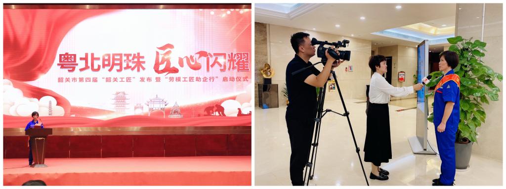 郑绍芸老师代表第四届“韶关工匠”在发布仪式上以“匠心筑梦 技能报国——在奋力谱写中国式现代化韶关新篇章中再立新功”为题,宣读了致各全市各行各业劳模工匠倡议书,并在会后接受了韶关广播电视台记者采访。