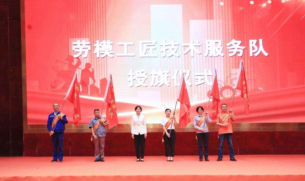 在“劳模工匠助企行”启动仪式上,市人大常委会副主任、总工会主席邓彩虹为5支劳模工匠技术服务队授旗。我校李福运、郑绍芸2位“韶关工匠”作为“制造类”服务队成员将在为韶关制造类企业强技术、解难题、优服务方面发挥自身技术技能优势,深入企业开展“五技”服务,在助力韶关制造业高质量发展中贡献自己的力量。