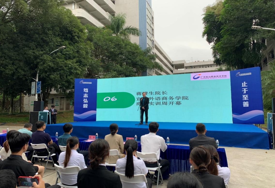 外语商务学院院长蒋澄生宣布学院“商贸实训周”开幕