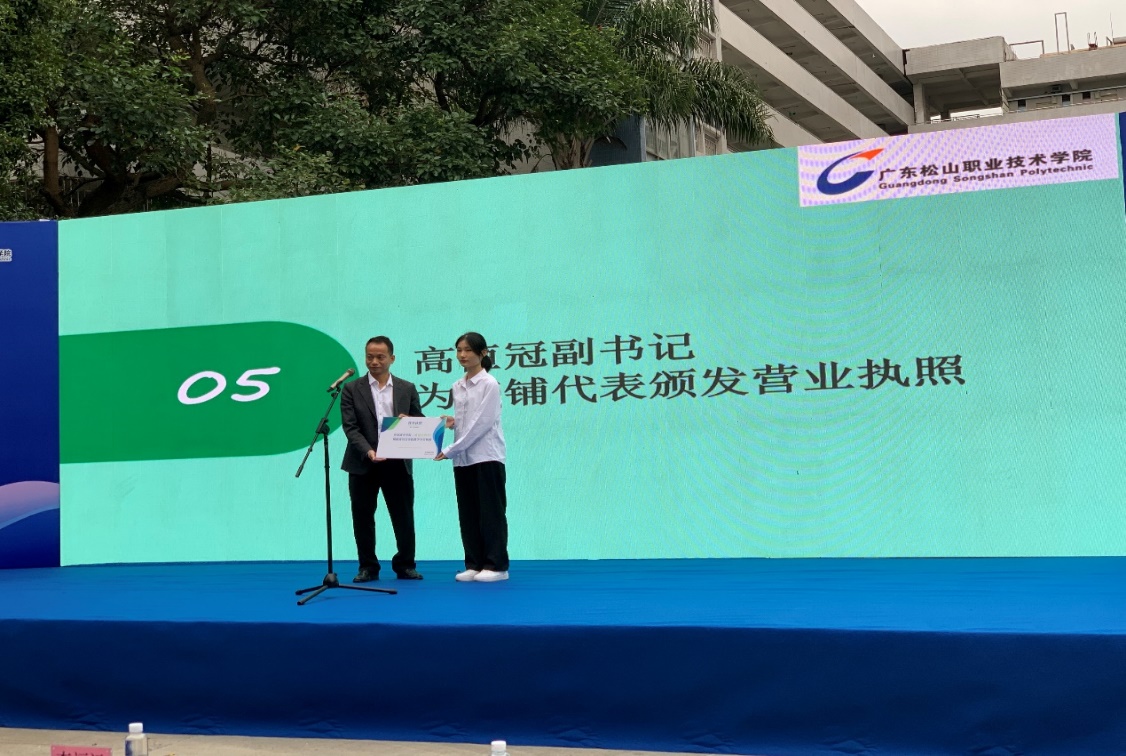 外语商务学院党总支副书记高恒冠为学生代表颁发营业执照