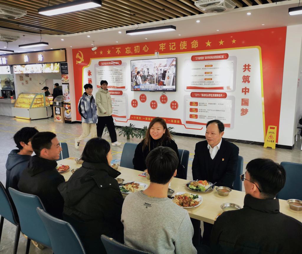 进餐过程中,学生代表畅所欲言,分享了日常在校的学习生活感受,汇报了在校取得的进步与成绩,并围绕学校管理服务、人才培养、校园文化建设、教学竞赛等内容,表达真实感受,为学校建言献策。