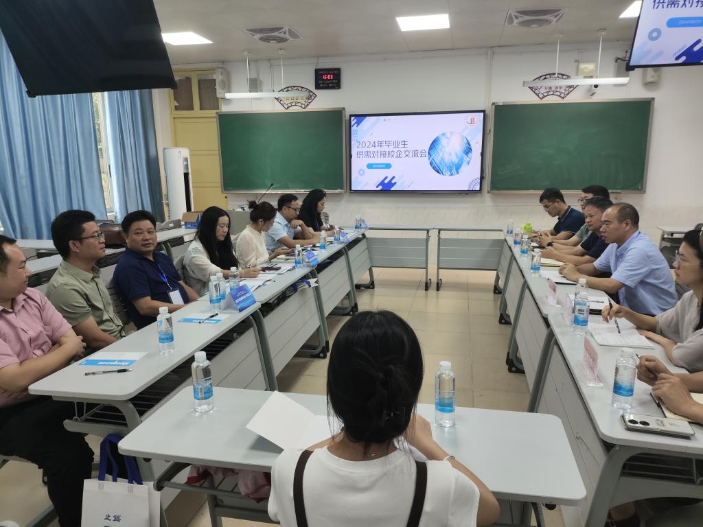 为深入贯彻落实党中央、国务院“稳就业”“保就业”决策部署,推动就业与培养有机联动、人才供需有效对接,全力促进我院毕业生充分高质量就业,6月26日下午,建筑学院召开校企供需对接交流会。本次活动吸引了广东平嘉项目管理有限公司韶关分公司、广东省华源建设项目管理有限公司、韶关市誉城装饰设计有限公司、碧桂园生活服务集团股份有限公司韶关浈江分公司等四家单位莅临我院进行深入的交流与项目对接。学院党总支书记詹训进、各专业负责人及学生代表参加会议,院长邓燕华主持会议。