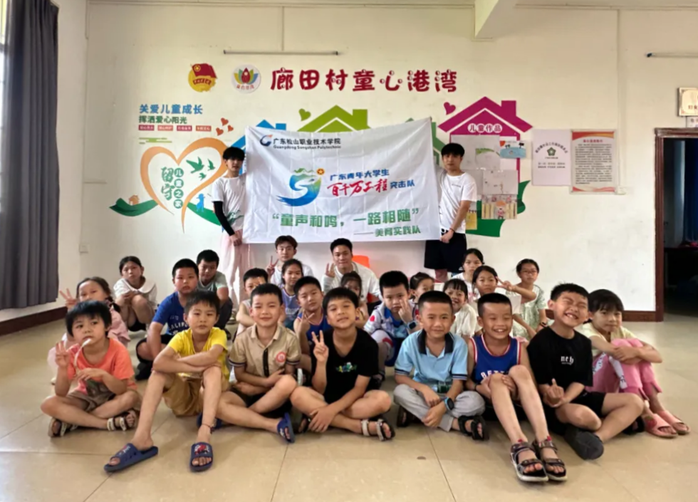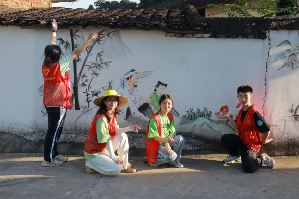 以学校云鸣合唱团为基础组建的“童声和鸣,一路相随”美育实践队在廊田镇童心港湾开设音乐课堂,为22位小朋友进行声乐系统培训,用合唱《鲜花》展现“艺”起成长的美育实践成果,用音乐在孩子们的心中播种艺术的种子。“粤享艺趣,绿美沙溪”文创助农振兴实践团和乡村振兴青年实践团以美术为媒,融乡村之魂于彩墨之间,为沙溪镇、小坑镇换上11幅墙绘新装,诉说着文化的温度与创新的活力。“能说会道”推普小分队等5支队伍围绕讲普通话、写规范汉字、做文明人、创新风尚等主题开展宣讲,运用体态教学、自我介绍、口部操、朗诵练习等形式,向当地村民进行推普宣传,累计8次推普教育,受益人次近300人。