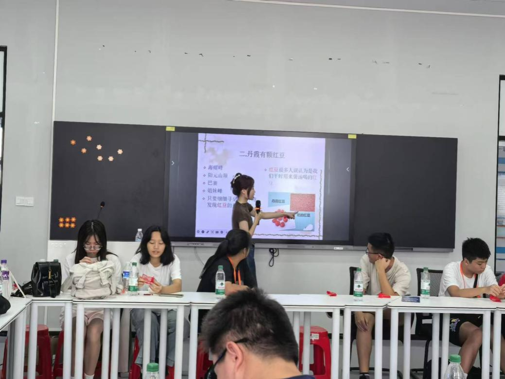 活动中,外语商务学院教师杨艺在产业园多功能厅内为学生们详细讲解了丹霞红豆的历史渊源、文化内涵以及背后的传说故事,帮助香港中学生初步了解丹霞红豆文化。