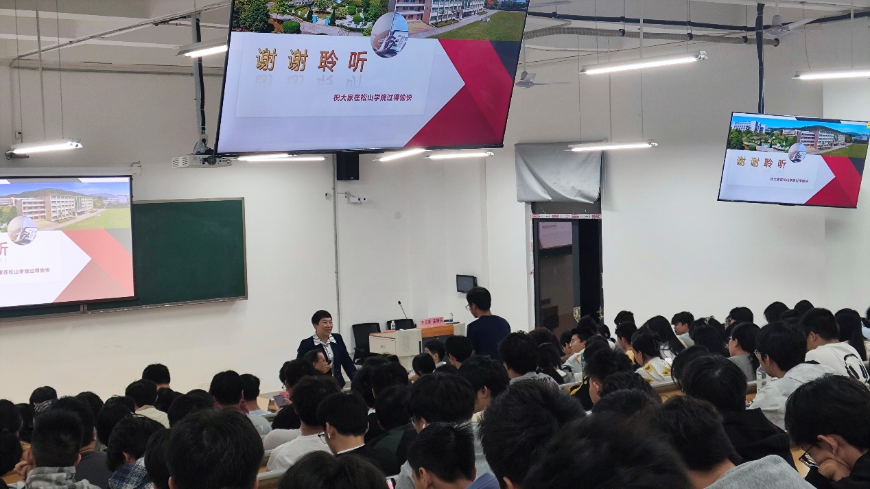 王玉贤以“规划未来 赢在起点”为主题,围绕“认识松山”“当代大学生如何学习”“专业介绍”“学分制改革”“技能竞赛”“产业学院建设”等多个方面,为大家系统解读了学校的办学理念、人才培养模式以及学习成长路径,重点介绍了学校在产教融合、校企合作方面的积极探索,包括粤北大数据产业学院、华为ICT学院等产业学院的建设成果,以及“岗课赛证”融通的人才培养模式,详细解读了学分制改革、辅修专业管理、技能竞赛成绩认定等教学管理制度,引导新同学树立自主学习和规划意识,鼓励同学们积极参与各类竞赛与实践活动,全面提升专业能力和综合素养。