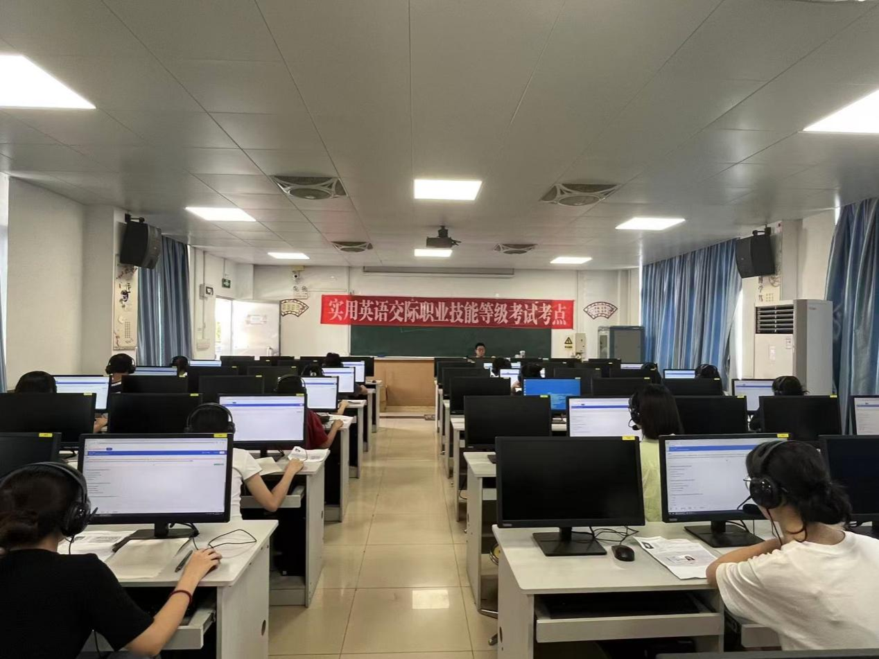 为确保考试顺利进行,外语商务学院成立“1+X”职业技能等级证书考试专项工作组,统筹推进考前宣传、报名组织、学生培训及考场设备调试等准备工作,顺利完成机考平台搭建与考场布置,为考生营造了规范、有序的考试环境。