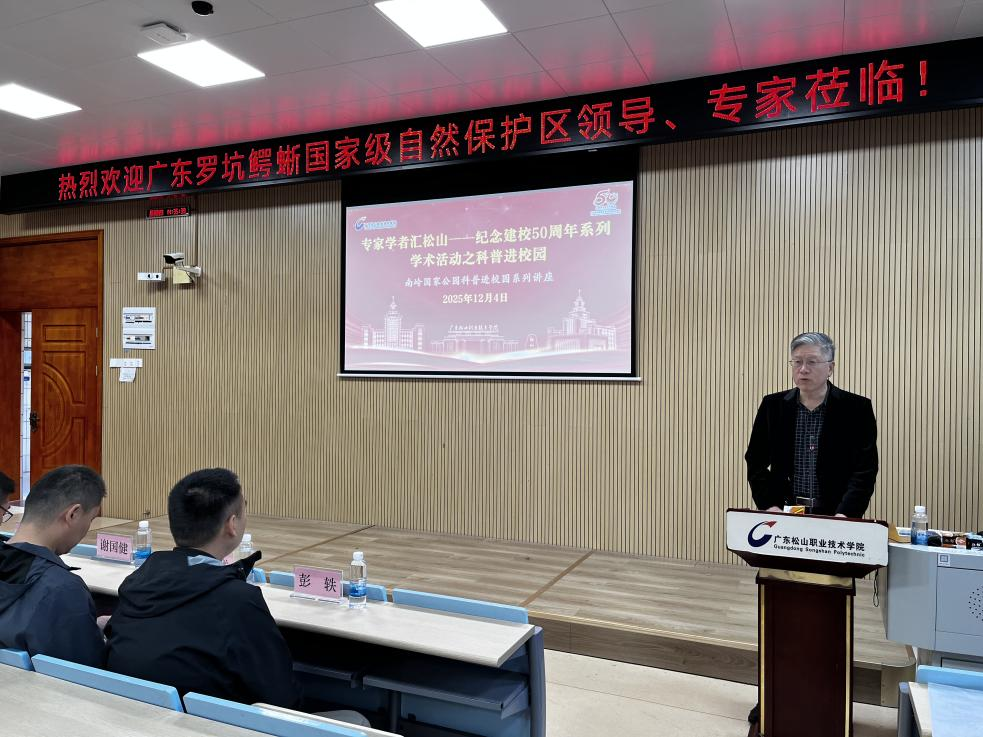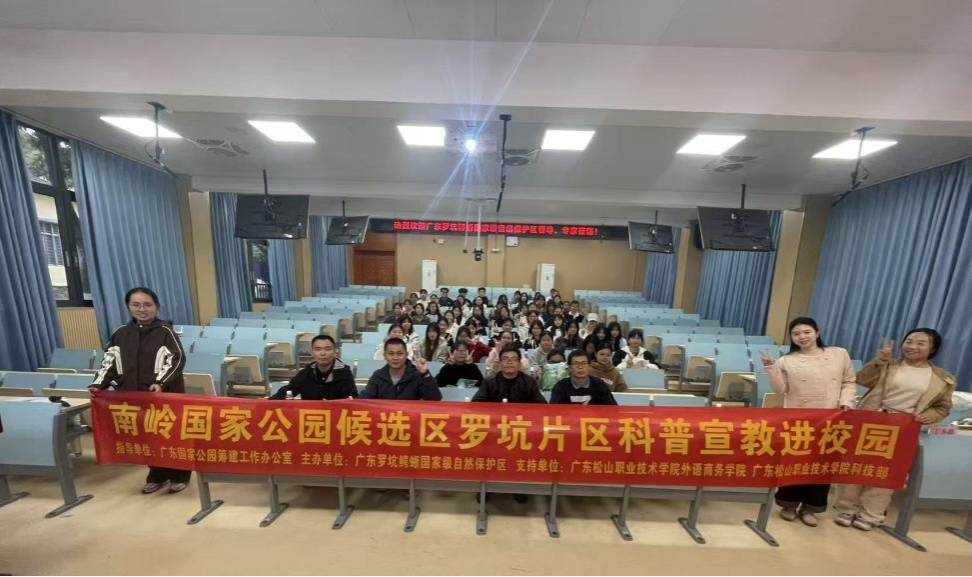 近日,我校在曲江校区圆满举办“专家学者汇松山”——纪念建校50周年系列学术活动之南岭国家公园科普讲座。此次活动由广东罗坑鳄蜥国家级自然保护区与我校外语商务学院、科技部联合举办。