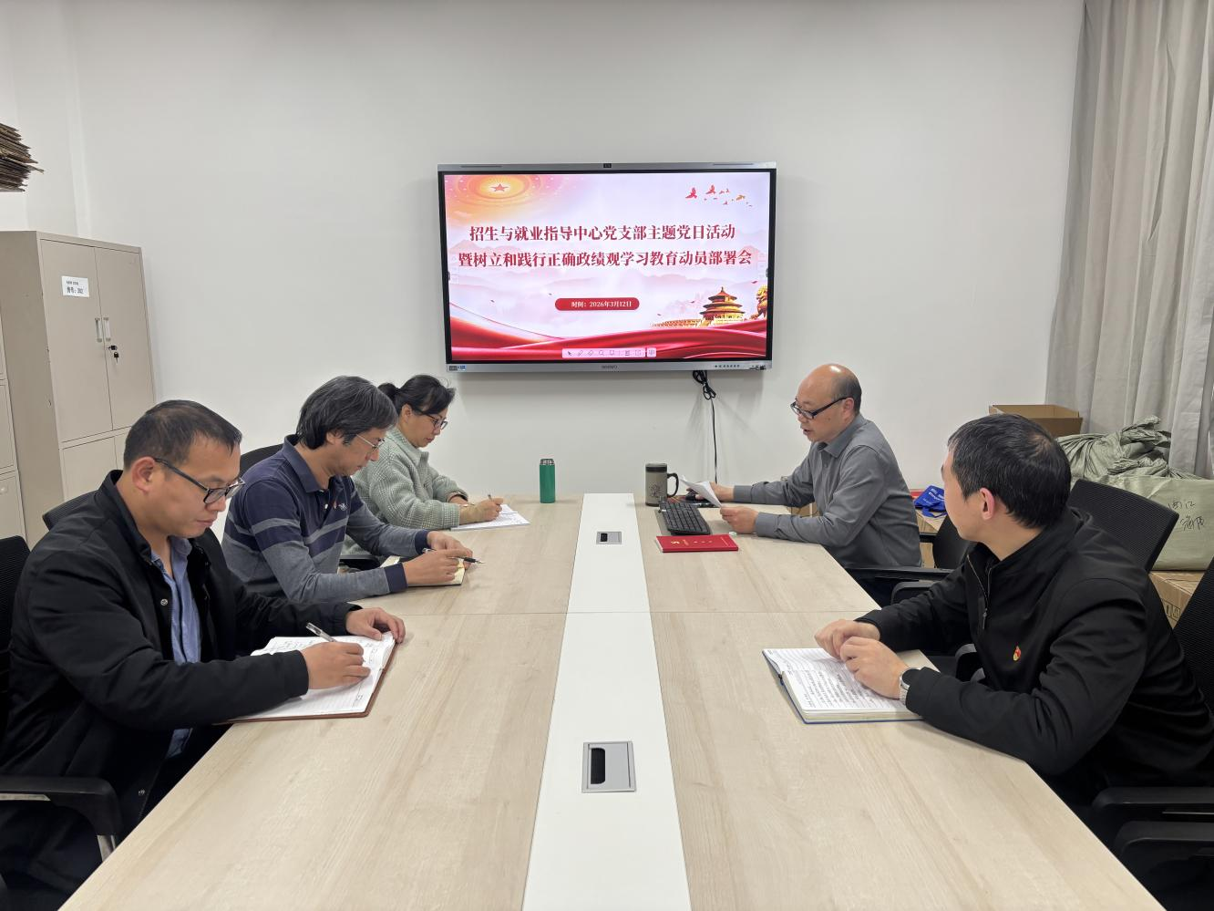 为深入学习贯彻习近平总书记关于树立和践行正确政绩观的重要论述精神,全面落实学校党委相关部署要求,3月12日,招生与就业指导中心在莲花校区明德楼A308会议室召开树立和践行正确政绩观学习教育动员部署会。会议由招生与就业指导中心党支部书记陈瑞华主持,党支部全体党员参加会议。