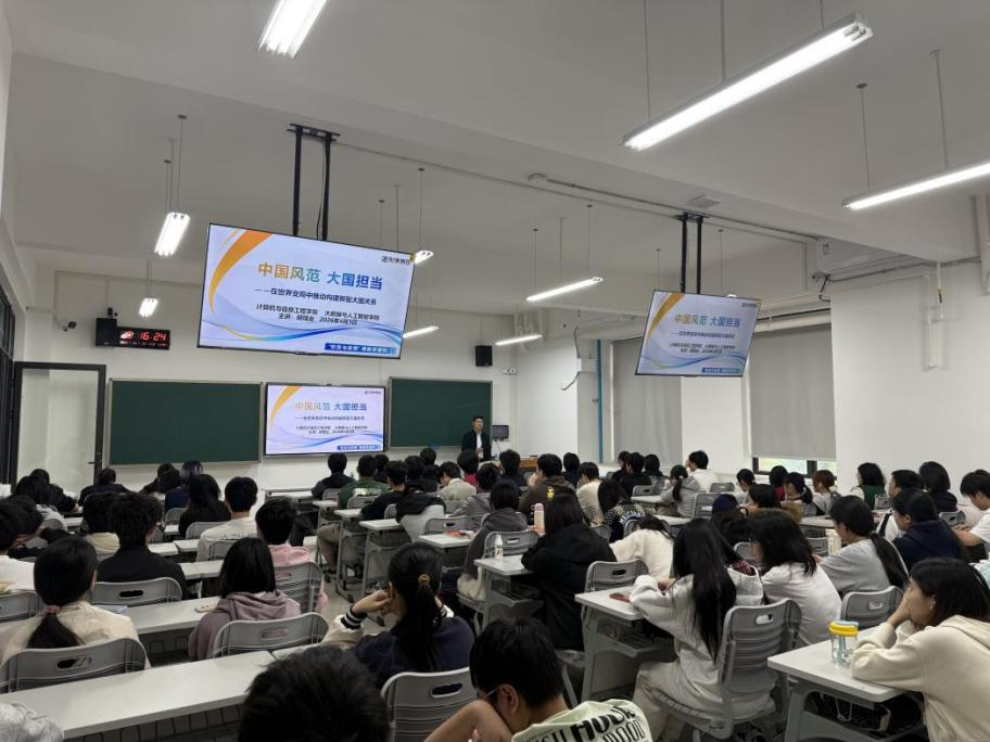 4月3日上午,计算机与信息工程学院、大数据与人工智能学院同步开展书记、院长“思政第一课”。党总支书记胡培业以“中国风范 大国担当——在世界变局中推动构建新型大国关系”为题,大数据与人工智能学院院长孙俊以“乘‘数’而上 智启未来——深入推进数字中国建设”为核心,为学院学子带来了两场兼具思想深度与实践指导意义的精彩授课。