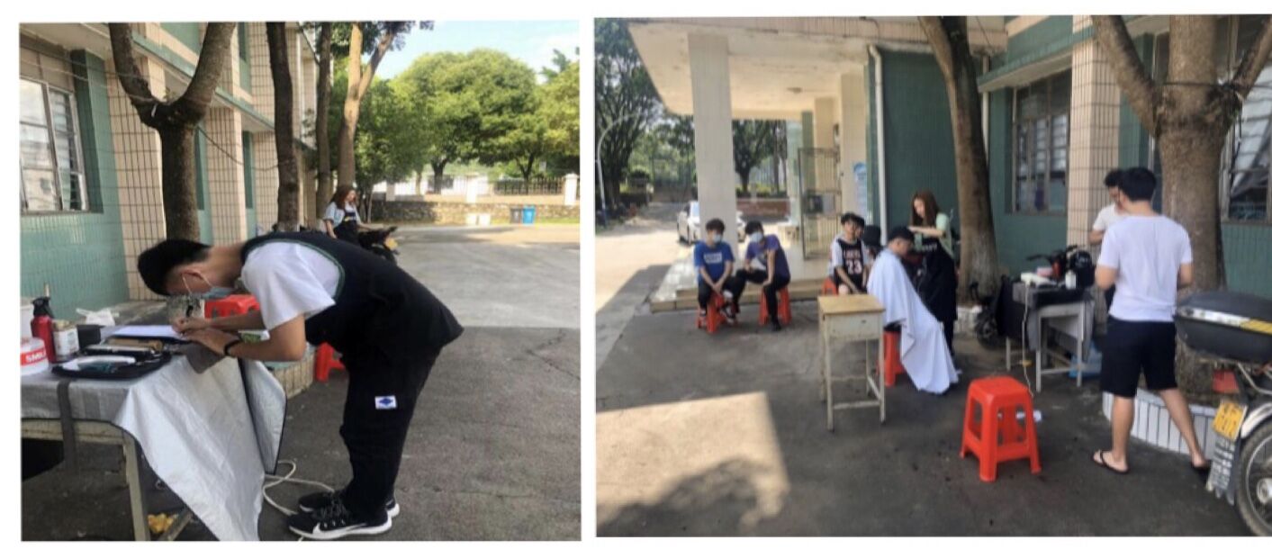 电气工程学院学生党支部党员带头,精心安排,严密监控,既解决了学生理发难问题,又保证疫情防控不放松。他们与保卫处协同,加强对服务点理发师的健康监控,查验粤康码,每天进校前测量体温;同时做好理发学生的体温检查与登记,保证等候理发学生间1.5米以上的间距,并尽量在室外理发,保证通风。截止到6月18日,共为约50名学生进行了理发服务。