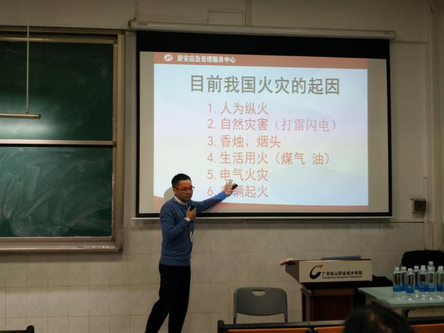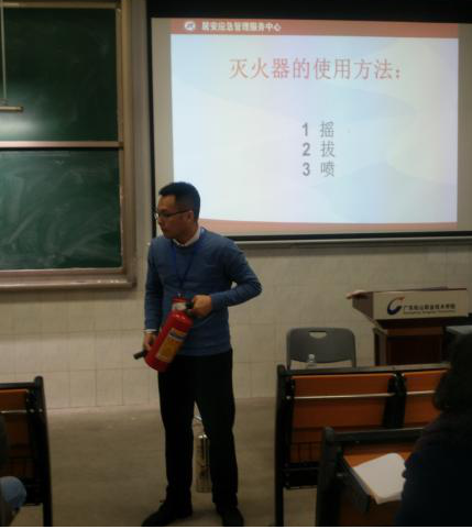 为进一步加强消防安全知识宣传教育,不断提高我院师生消防安全意识和应急能力,掌握基本的自救和应对突发火险火灾事故的处置能力,12月20日下午,我院保卫处诚邀韶关市居安应急管理服务中心培训指导唐江教官在厚字楼C401开展了以防范火灾风险 建设美好家园暨“今冬明春”2019年消防知识培训讲座活动,参与培训师生近110人。