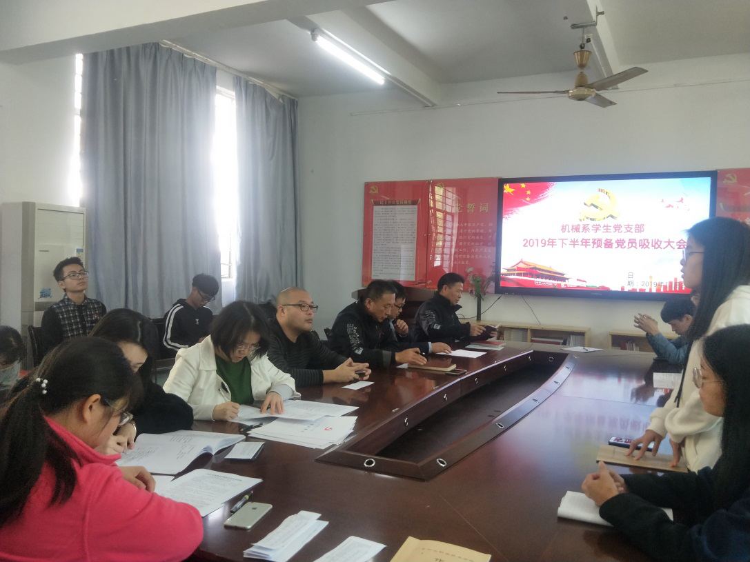 11月20日,机械工程系学生党支部召开2019年下半年党员大会,研究讨论8名发展对象成为预备党员的申请。会议由党支部书记向丽主持。