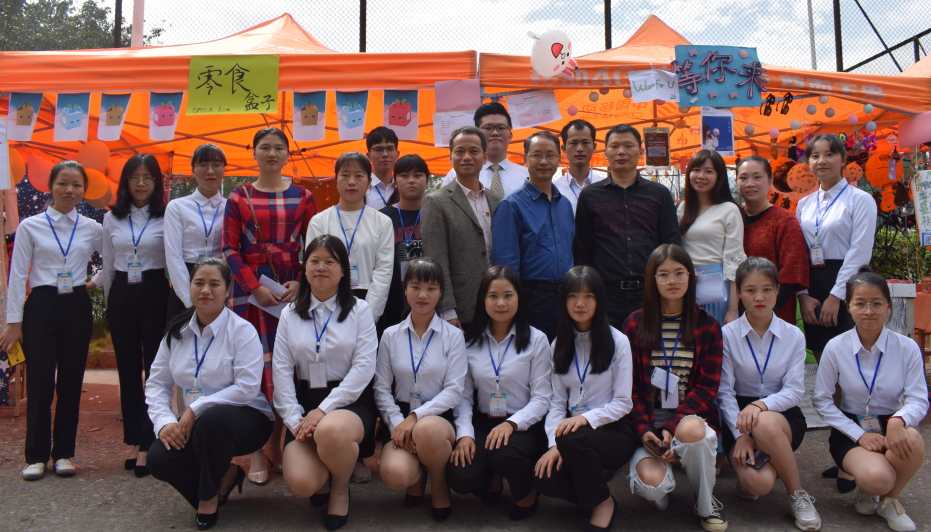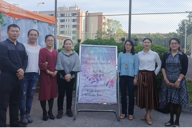 模拟商洽会老师和参会各角色同学合影留念