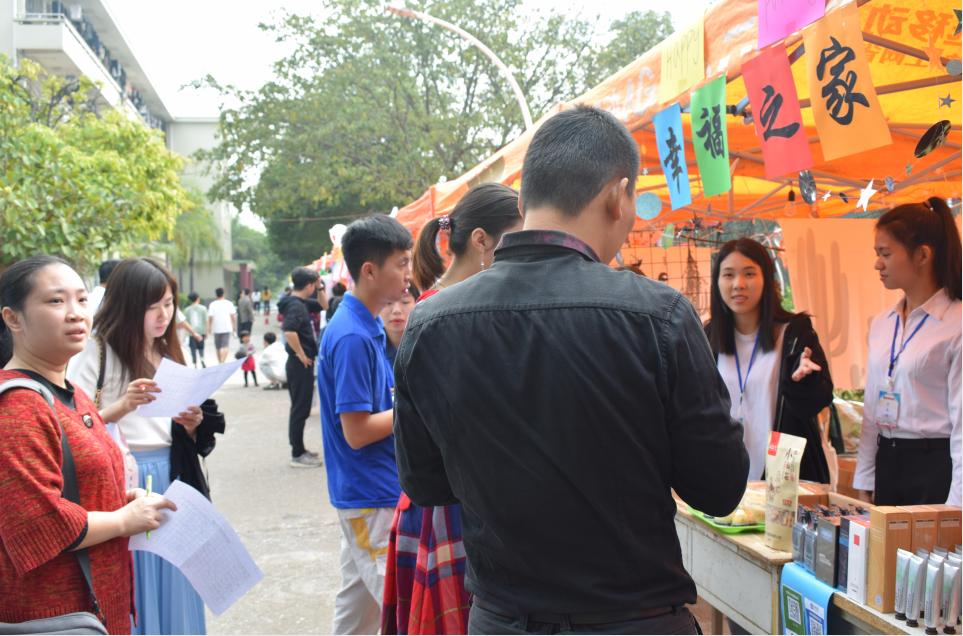 在学院举办第八届校园商务文化节之际,外语系商务英语专业于11月1日-3日在第八栋学生宿舍至图书馆的校道旁隆重举行为期三天的第六届模拟商洽会现场交易会项目。活动期间,卖家组共实现23331.7元的交易额,其成本合计为15361.25元,利润达7970.45元。