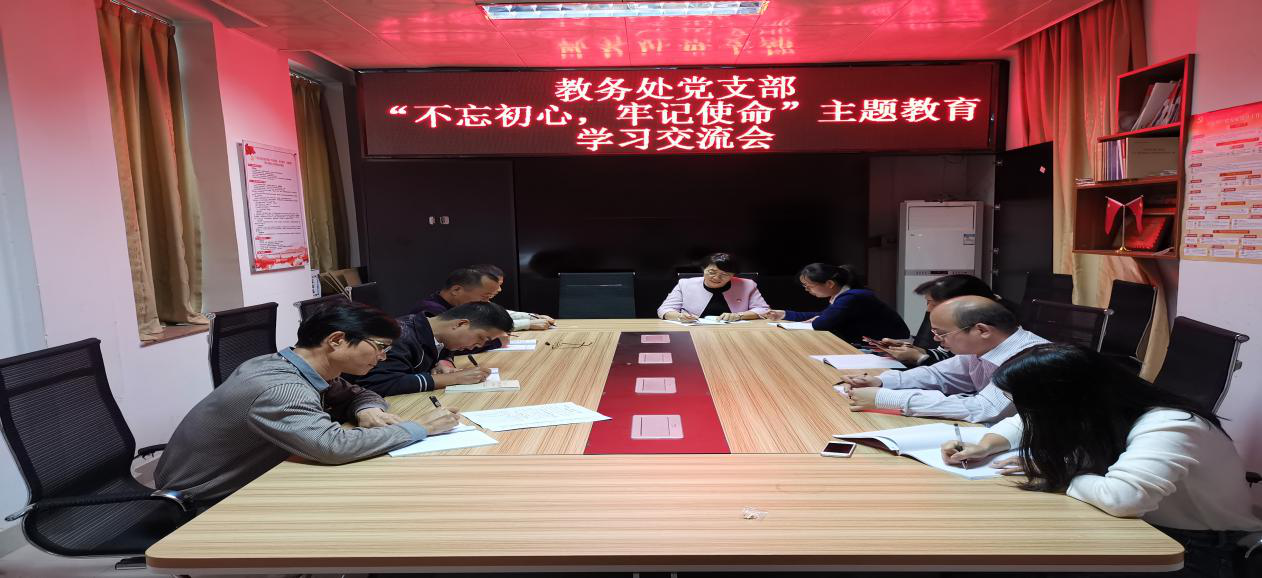 10月25日上午,教务处党支部在行政楼三楼会议室召开“不忘初心、牢记使命”主题教育学习交流会。教务处党支部彭义文、罗彩文等9名党员参加会议。会议由王玉贤同志主持。