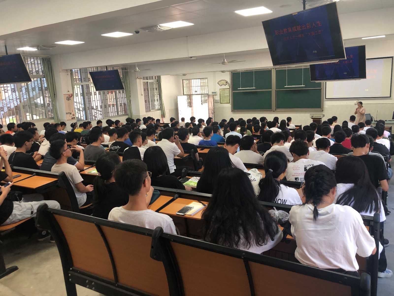 机械工程系学生党支部书记向丽旁征博引,深入浅出地向同学们谈职教生未来:技能人才一样出‘大国工匠’”,在校学好知识技能对同学们今后的成长成才具有重要意义和作用。她鼓励同学们要不断学习新知识,努力提升自我,用青春的奋斗书写属于自己的华丽篇章。