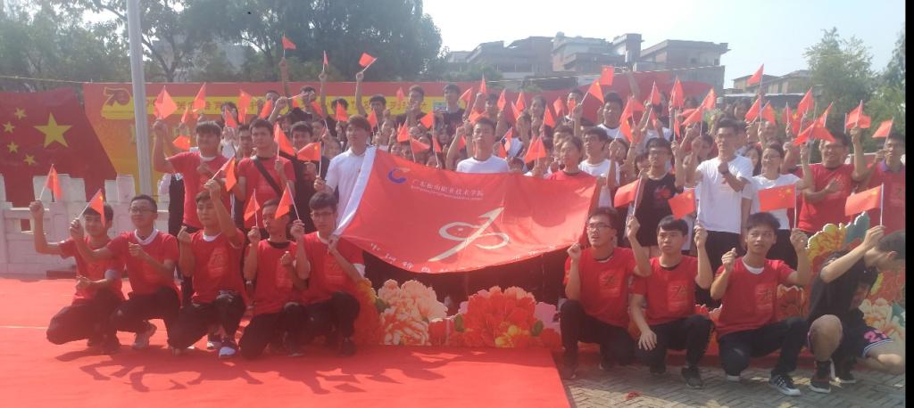 10月1日上午,学院思政部组织近百名学生代表前往韶关市省委旧址参加由韶关市委宣传部举办的全市升旗仪式。伴随着英姿飒爽的仪仗队护着国旗走向升旗台,来自全市大中小学校的学生一起歌唱国歌, 五星红旗冉冉升起。同学们与周围群众对国旗行注目礼。