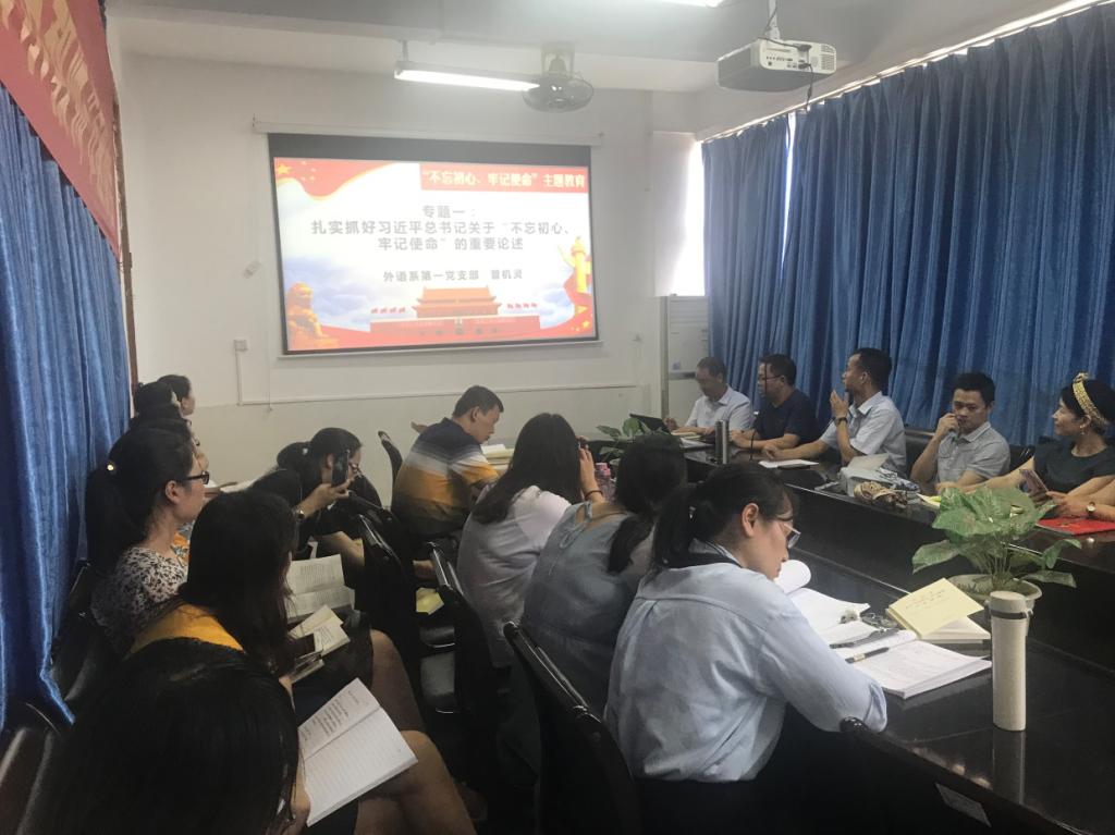 9月16日中午,外语系召开“不忘初心、牢记使命”主题教育学习研讨会,外语系党总支副书记刘攀桂、外语系副主任高恒冠及全体教师党员同志参会。