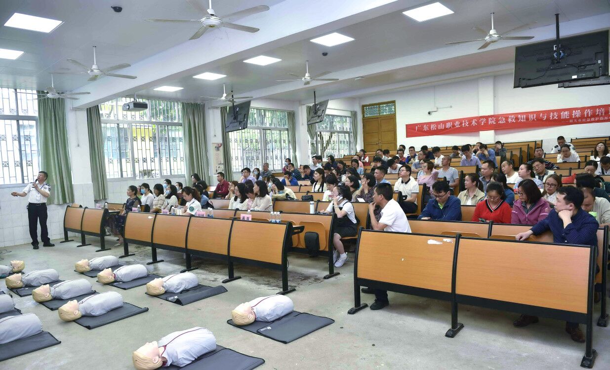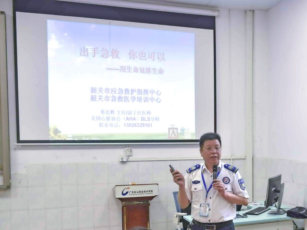 活动特别邀请了韶关市应急救护指挥中心主任邓光辉、副主任蒋源、培训科长林艺景、办公室主任张绮凌等4位专业人士到现场开展“心肺复苏、心脏除颤(CPR.D)、‘海姆立克急救法’”三方面急救知识的培训。培训分为专业知识讲解与现场实践操作两个部分。