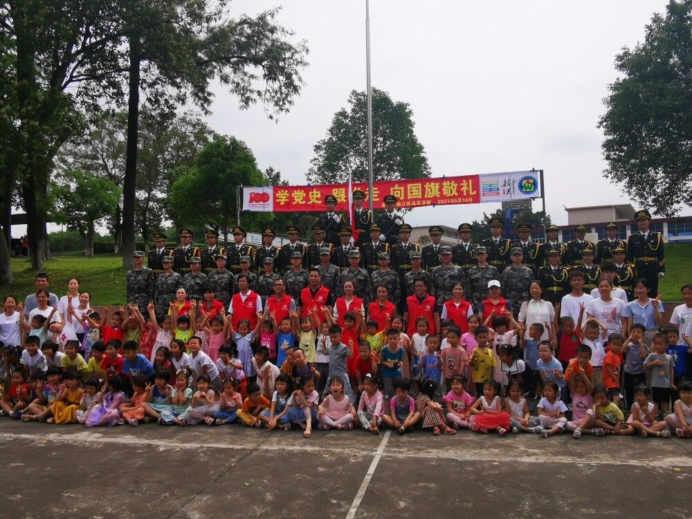 为积极贯彻 《中共教育部党组关于教育系统深入开展爱国主义教育的实施意见》、广东省教育厅“大手拉小手”国旗护卫队结对共建的文件精神,帮助广大少年儿童深入了解中国共产党的光辉历程,加强青少年共产主义理想信念教育和国旗文化的认识,进一步弘扬爱国主义精神,厚植家国情怀,传承红色基因, 5月12日,我校学生工作部党支部、国旗护卫队、退役复学学生代表带着初心,承载着使命再次走进乡镇--曲江区乌石镇中小学、幼儿园开展“学党史 、跟党走 向国旗敬礼”的爱国主义主题教育活动。本次活动得到了曲江区人武部、乌石镇人民武装部及乌石镇学校的大力支持与配合。