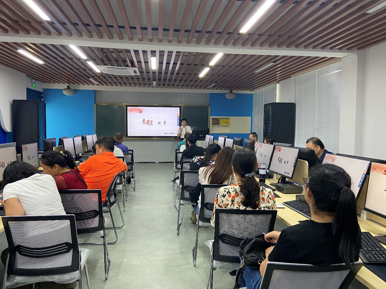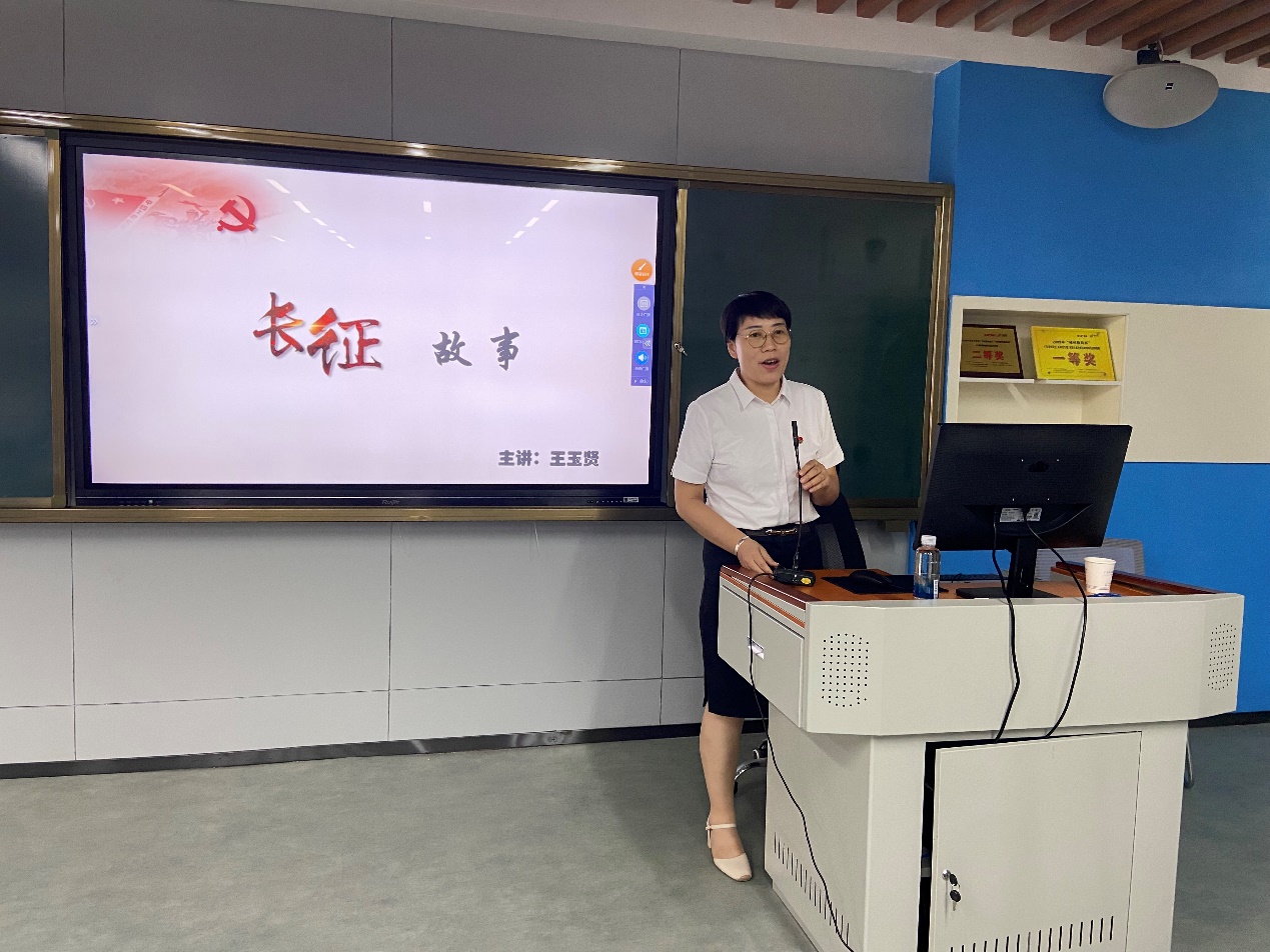 王玉贤以“重温长征故事”为主题,从历史背景、历史故事和当代人物等方面重温长征故事。王玉贤表示长征精神是跨越时空、历久弥新的宝贵精神财富,为我们提供了丰厚的滋养。值此建党一百年之际,作为新时代的建设者,我们要学党史、悟思想、办实事、开新局,自觉传承红色基因,赓续共产党人的精神血脉,始终保持革命者的大无畏奋斗精神,鼓起迈进新征程、奋进新时代的精气神。