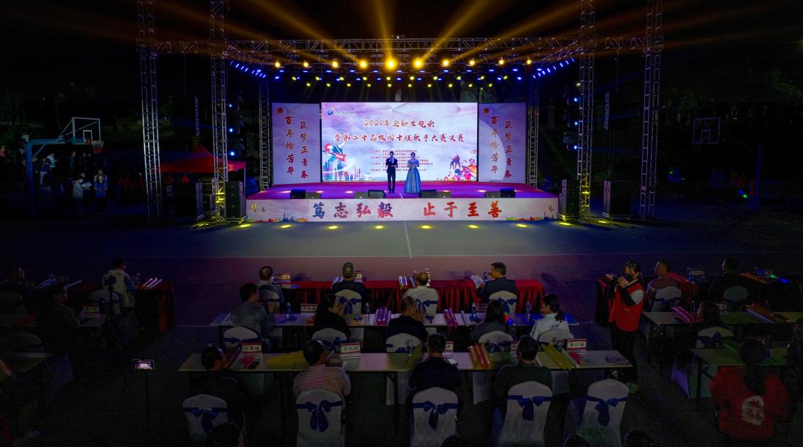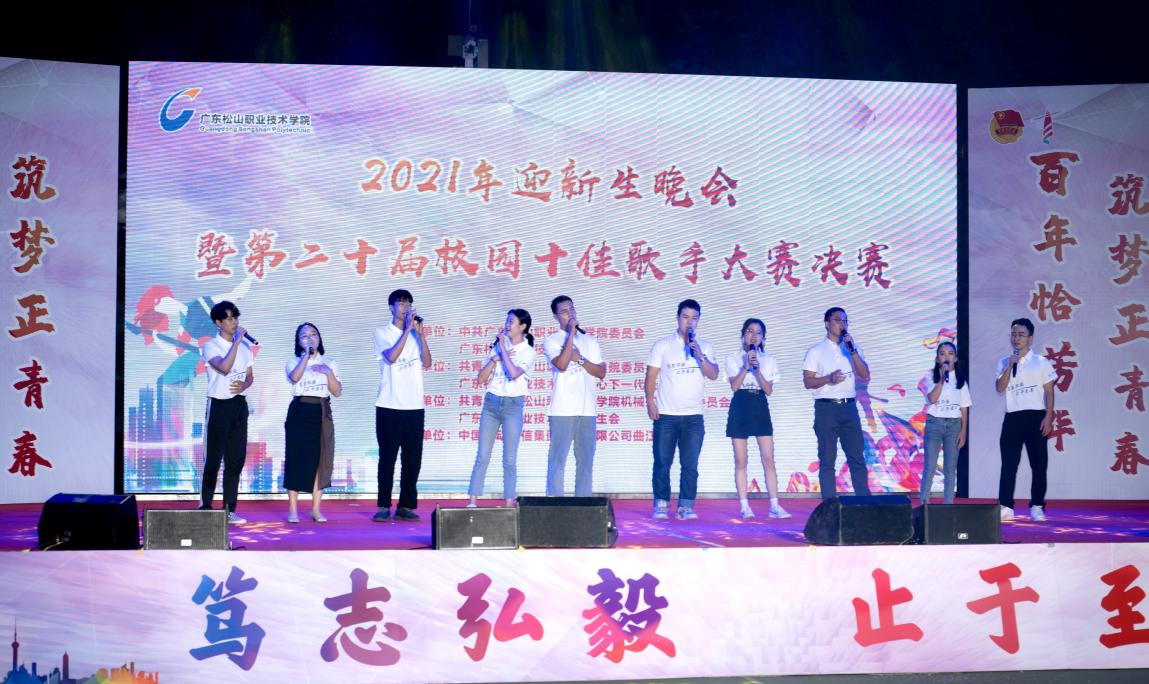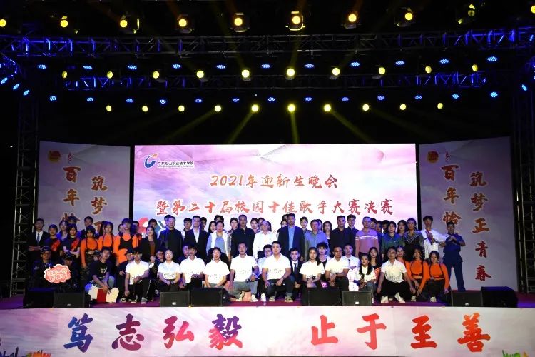 为庆祝中国共产党成立100周年,扎实推进党史学习教育,加强学生思想政治引领,推进校园文化建设,积极打造品牌活动,引领我校广大青年发扬红色传统,传承红色基因,鼓起迈进新征程、奋进新时代的精气神,赓续中国共产党人的红色血脉,10月28日晚,“百年恰芳华,筑梦正青春”——2021年迎新生晚会暨第二十届校园十佳歌手大赛决赛在我校曲江校区和字楼前篮球场隆重举行。党委副书记、纪委书记谭春雨,党委副书记张林茂,纪委办公室(监察审计室)、党政办、组织宣传统战部、学生工作部、校团委及各二级学院党政负责人出席活动并观看演出。本次活动由中国移动通信集团广东有限公司曲江分公司赞助。