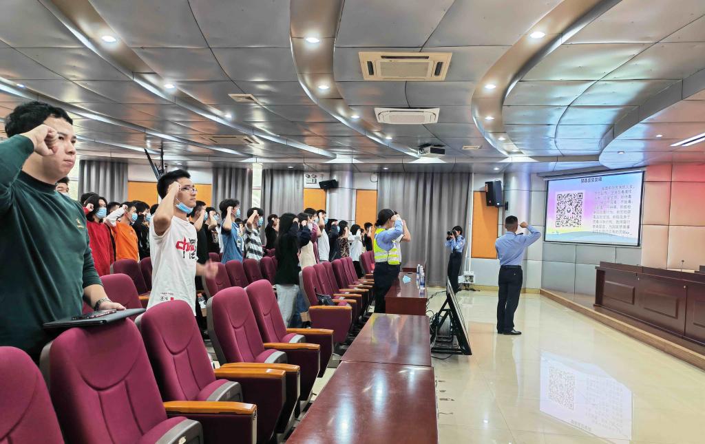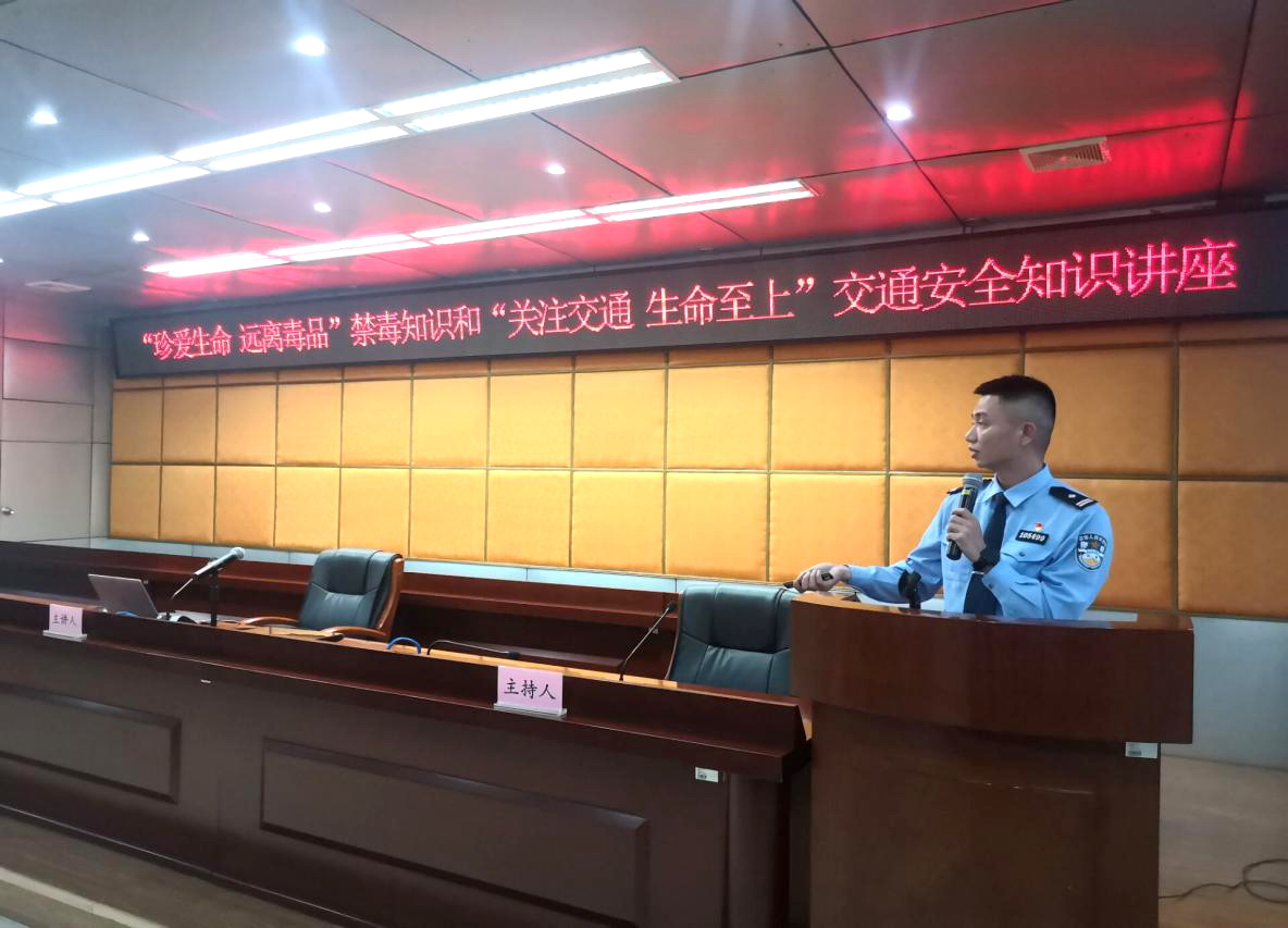 为进一步增强2021级新生“识毒、防毒、拒毒”能力和交通安全意识,11月5日下午,我校党政办、学生工作部联合邀请韶关市公安局禁毒大队、交警大队警官进校,在宽字楼C201为我校师生带来了一场生动的“珍爱生命 远离毒品”禁毒知识和“关注交通 生命至上”交通安全知识专题讲座活动。学生工作部部长叶采飞、党政办及学生工作部相关人员参加讲座,我校180余名师生现场聆听讲座。