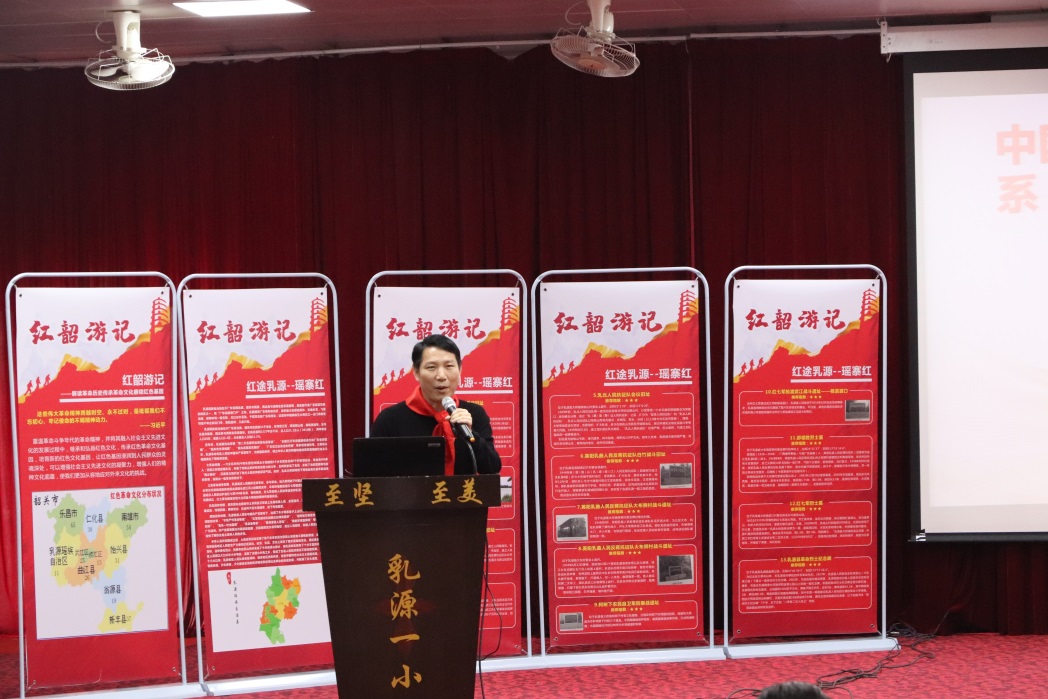 为深刻缅怀革命先烈的丰功伟绩,大力弘扬伟大建党精神和长征精神,传承韶关红色文化基因,加强对大中小学生的革命传统教育和爱国主义教育,11月18日下午,广东松山职业技术学院马克思主义学院宣讲团一行来到乳源第一小学开展了“传承红色基因,做坚美好少年”的红色故事宣展会。我校马克思主义学院院长范卉敏、刘明山博士、罗红希博士,科技部彭义文,电气工程学院罗远宁,以及乳源第一小学校长罗镇球、学校少先队代表与党员教师近500人参加了这次宣讲会。