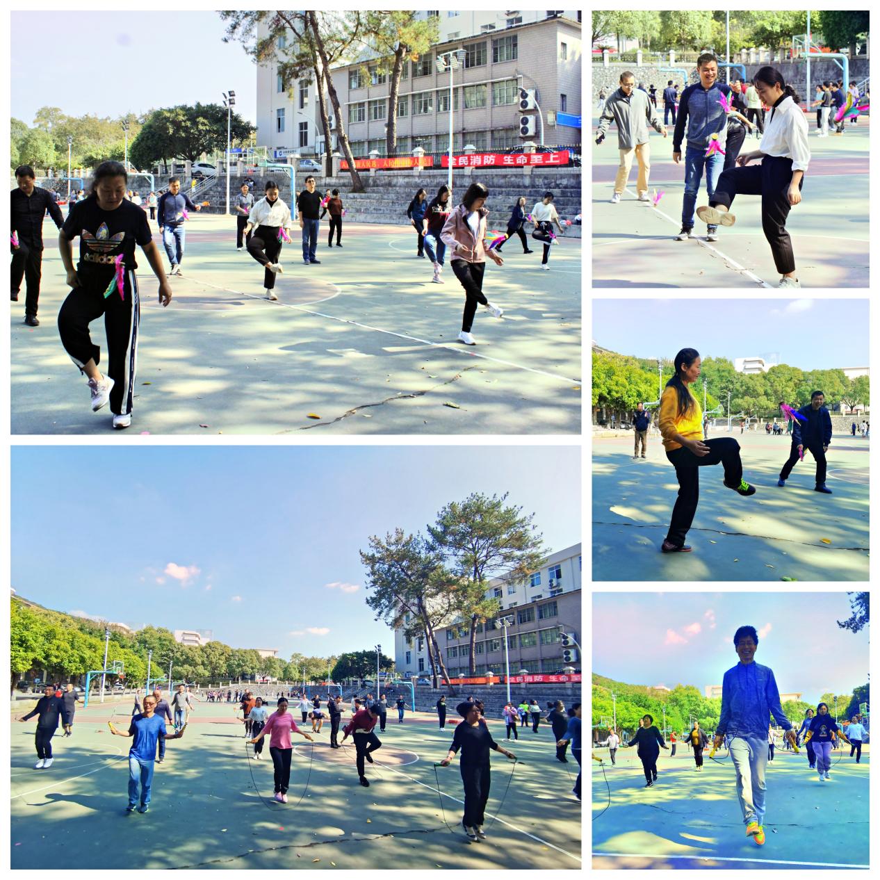 本届趣味运动会还设有个人赛项。比赛中,教工们摩拳擦掌,各显身手。跳绳的教工们身手敏捷、疾如飞燕,让观众目不暇接。踢毽子的教工们有的脚内侧踢、有的脚外侧反踢、有的脚面勾……一时间,赛场上彩绳飘荡、毽羽飞扬。