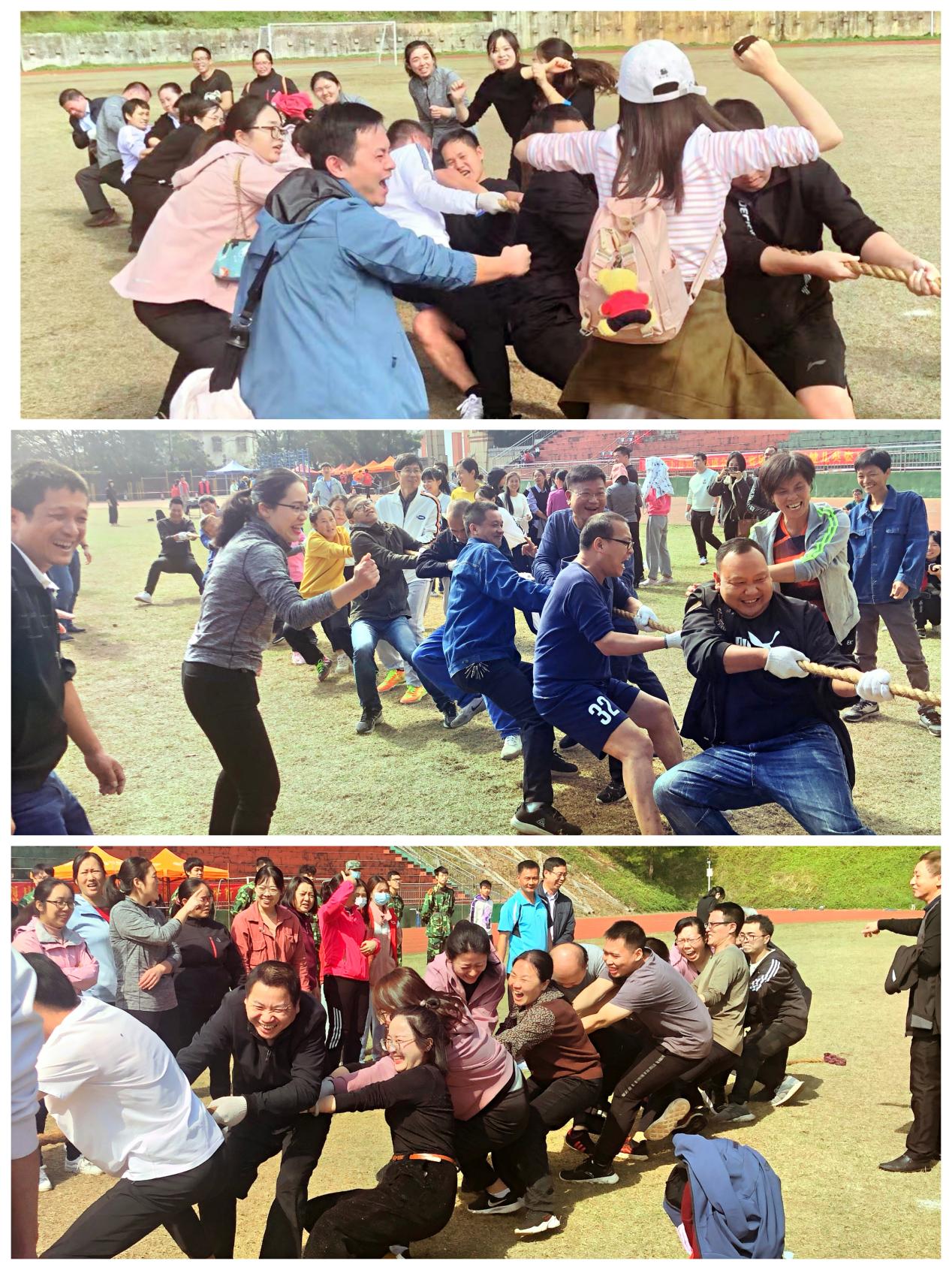 赛事精彩不断,教职员工们意犹未尽。拔河比赛、三人四足接力赛、击鼓颠球赛等团体赛项接踵而至。赛前,各队伍仔细研究比赛规则,认真组织、反复练习。紧张激烈的比赛开始,选手们个个激情饱满,全神贯注,团结协作,全力以赴。一旁的教工们纷纷为运动员呐喊鼓劲,加油声、欢笑声此起彼伏,热闹非凡,运动场上洋溢着全民健身的喜悦和团结友爱、拼搏向上的运动精神。最终,外语商务学院分工会勇夺三项团体赛桂冠。